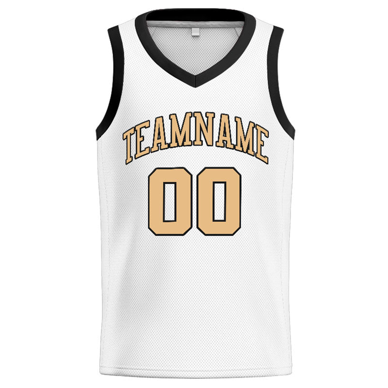Benutzerdefinierte Authentisch Basketball Trikot Weiß-Schwarz-Gold