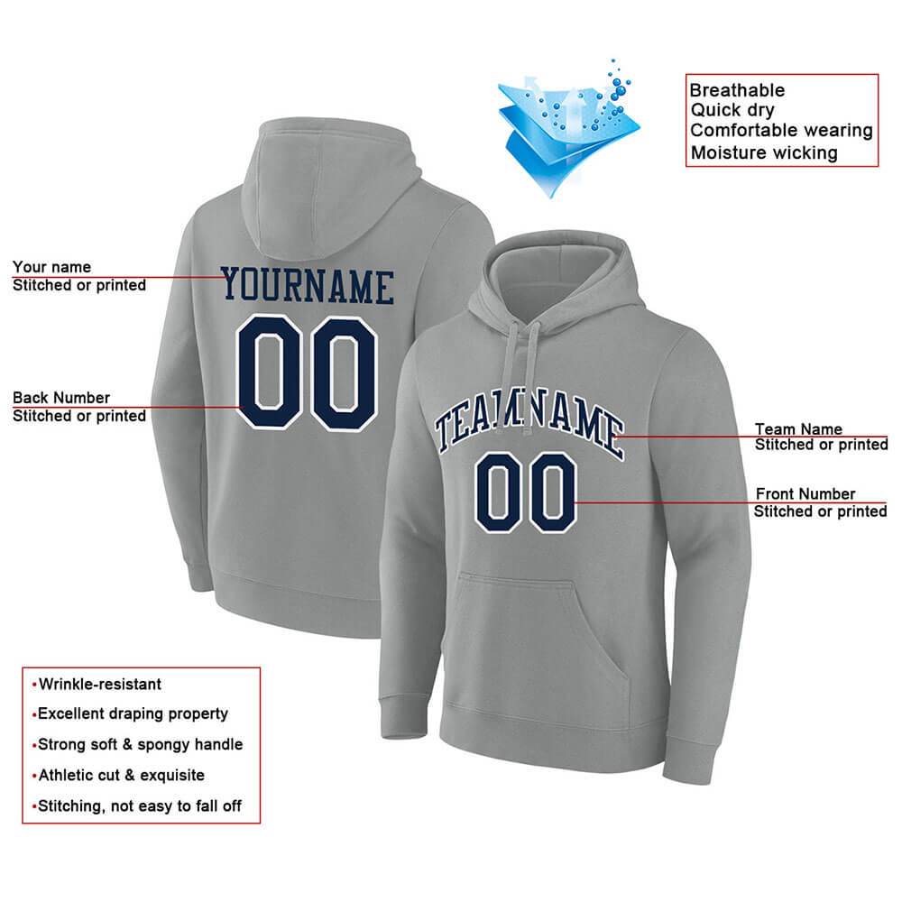 Benutzerdefinierte Authentisch Sweatshirt-Kapuzenpulli Grau-Marine-Weiß
