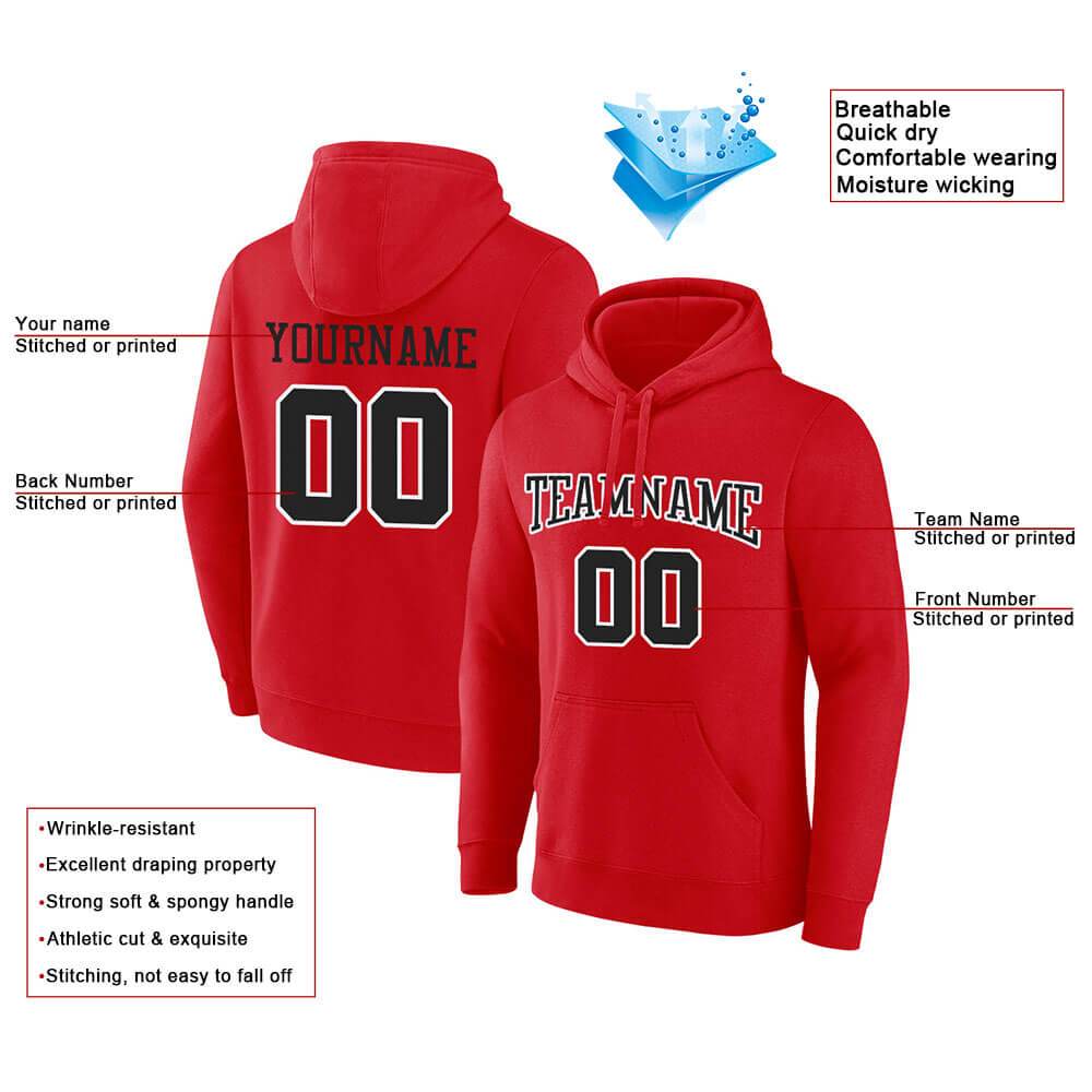 Benutzerdefinierte Authentisch Sweatshirt-Kapuzenpulli Rot-Schwarz-Weiß