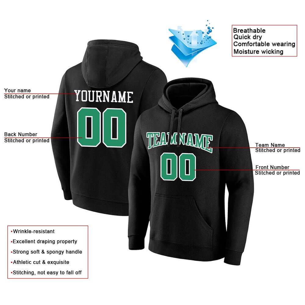 Benutzerdefinierte Authentisch Sweatshirt-Kapuzenpulli Schwarz-Kelly Grün-Weiß