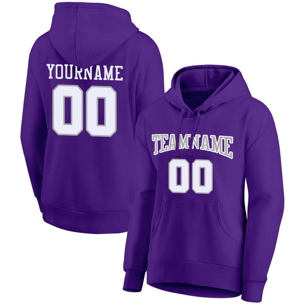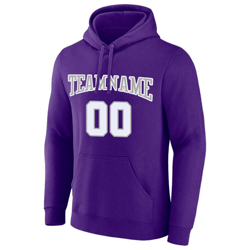 Benutzerdefinierte Authentisch Sweatshirt-Kapuzenpulli Violett-Weiß-Grau