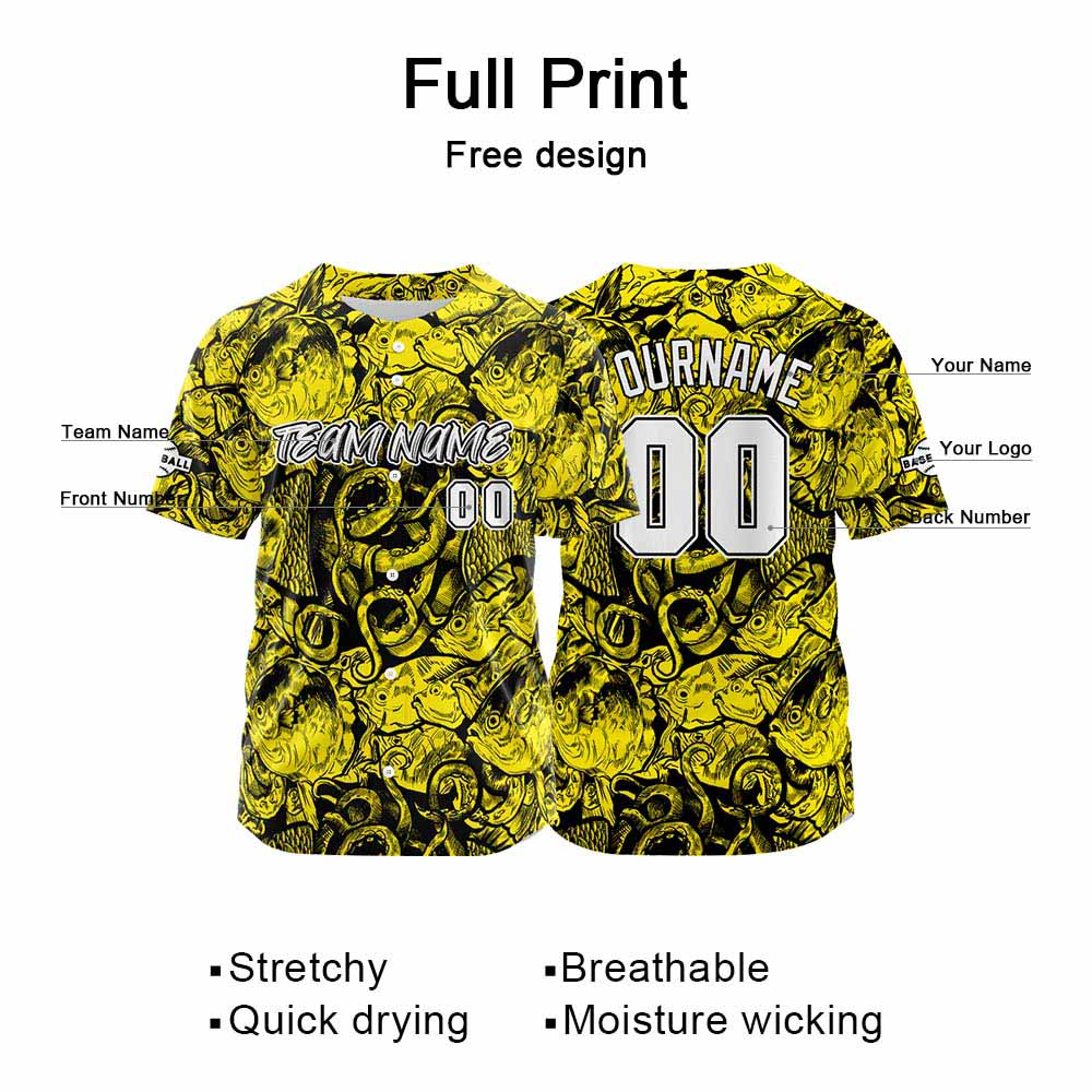 Benutzerdefinierte Baseball Jersey Personalisierte Baseball Shirt genäht und Druck Gelb