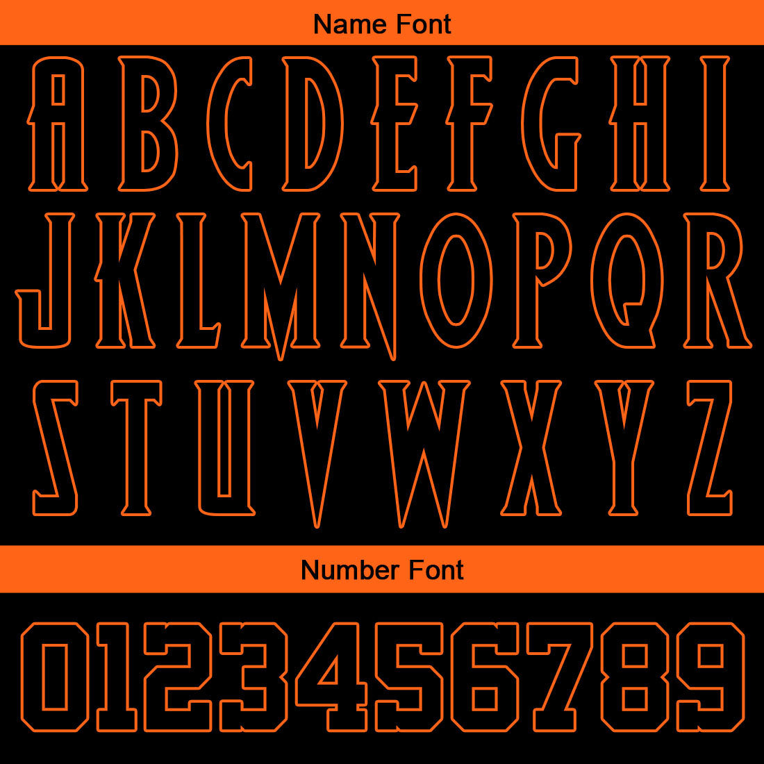 Benutzerdefinierte Baseball Jersey Personalisierte Baseball Shirt genäht und Druck Hai-Schwarz&Orange