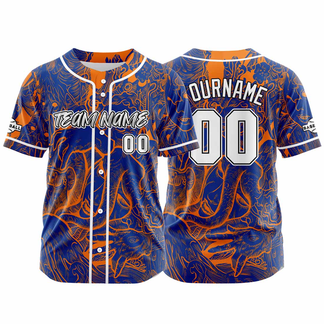 Benutzerdefinierte Baseball Jersey Personalisierte Baseball Shirt genäht und Druck Marine &Orange