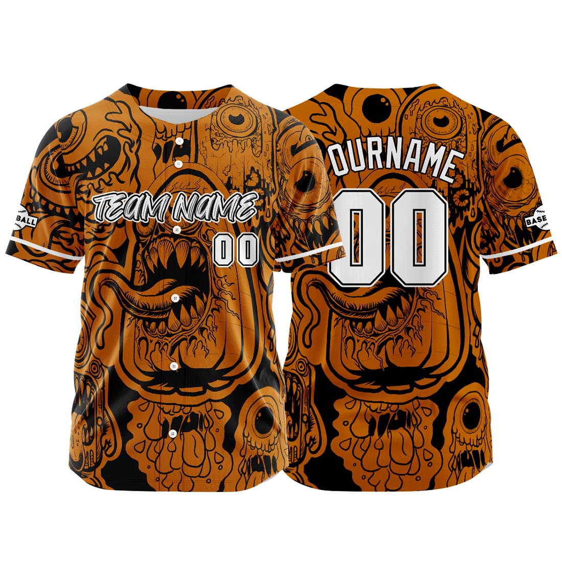 Benutzerdefinierte Baseball Jersey Personalisierte Baseball Shirt genäht und Druck Monster-Orange