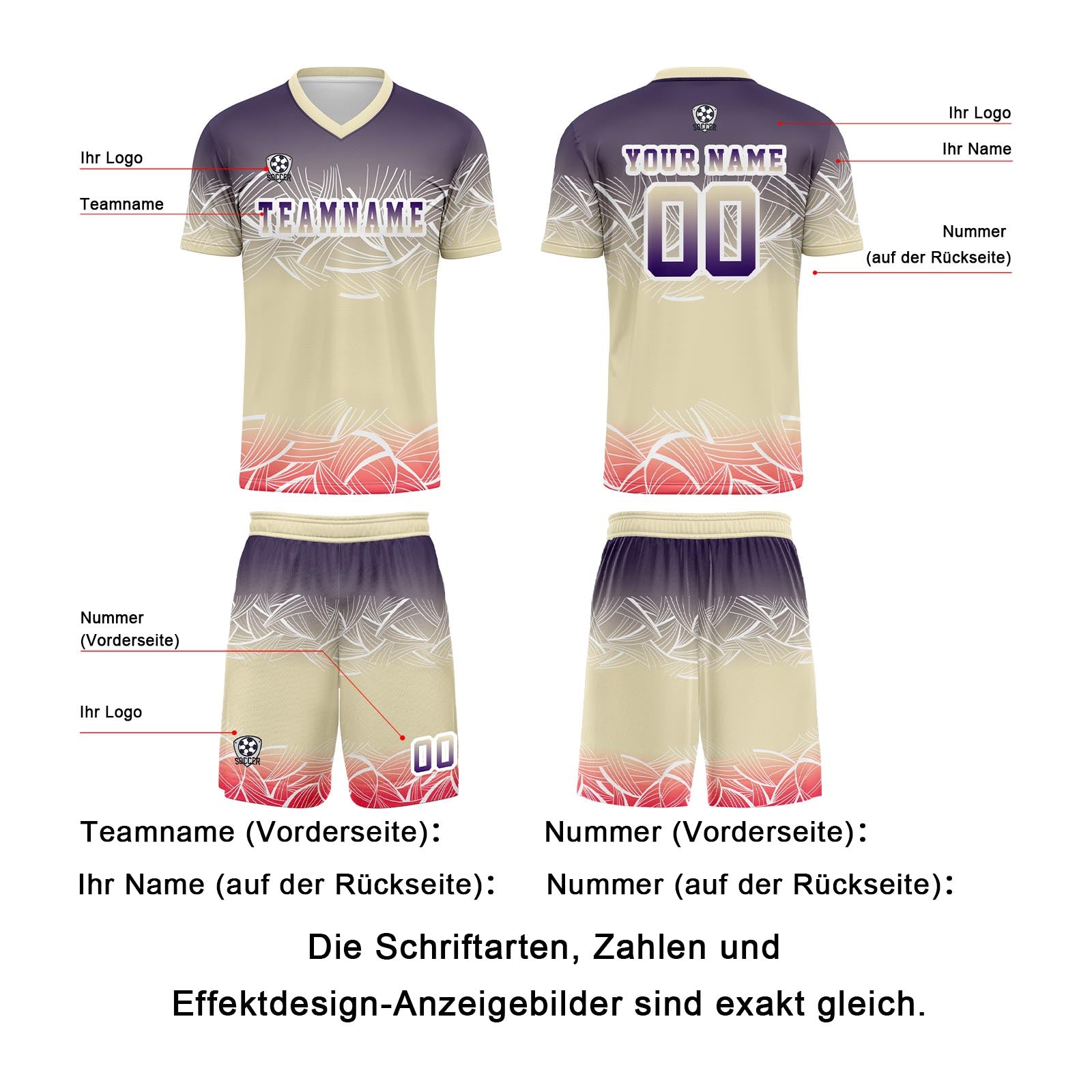 Benutzerdefinierte Beige Lila Trikots für Männer Frauen Personalisierte Fußball Uniformen für Erwachsene und Kind