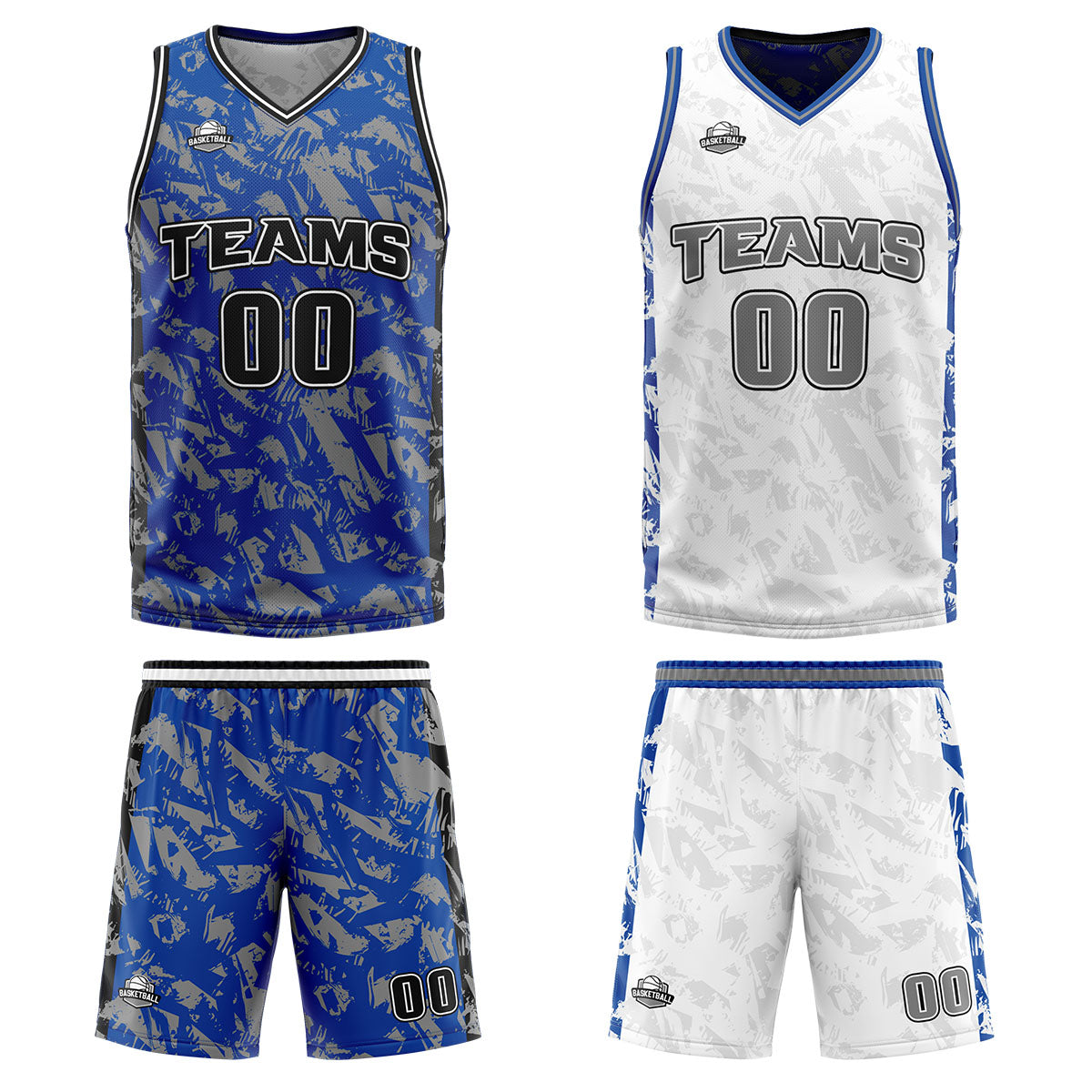 Benutzerdefinierte Blau Grau Reversible Basketball Jersey Personalisierte Print Name Nummer Logo