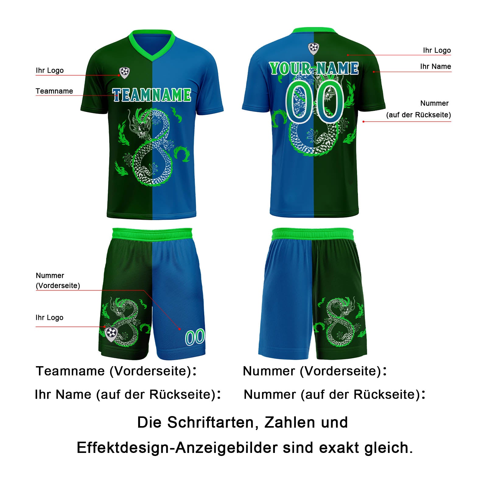 Benutzerdefinierte Blau Grün Trikots für Männer Frauen Personalisierte Fußball Uniformen für Erwachsene und Kind