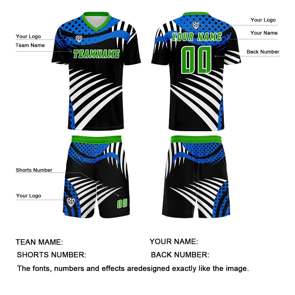 Benutzerdefinierte Blau Grün Trikots für Männer Frauen Personalisierte Fußball Uniformen für Erwachsene und Kind