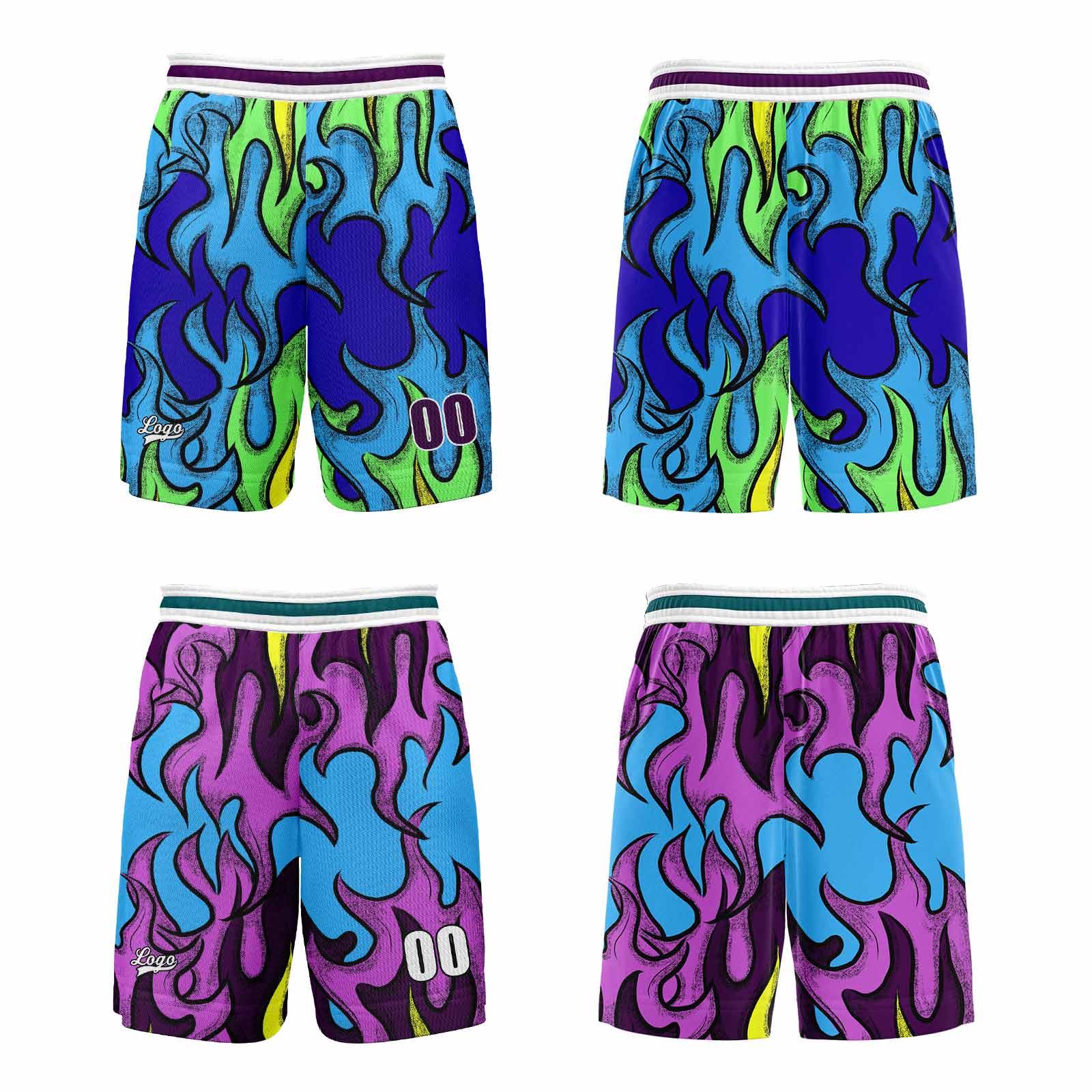 Benutzerdefinierte Blau Lila Reversible Basketball Jersey Personalisierte Print Name Nummer Logo