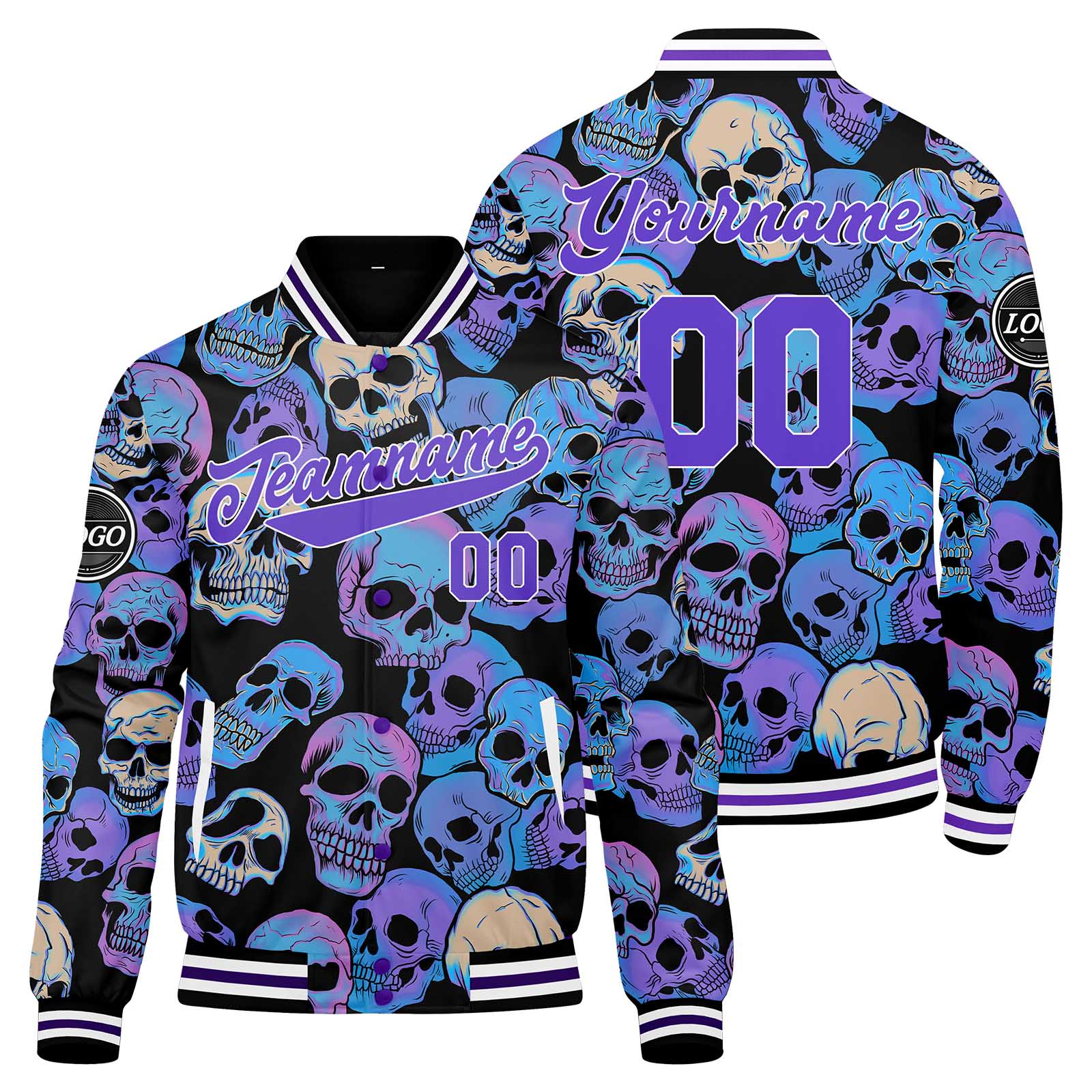Benutzerdefinierte Blau Lila Varsity-Jacke. Letterman-Jacke für Männer, Frauen und Jugendliche