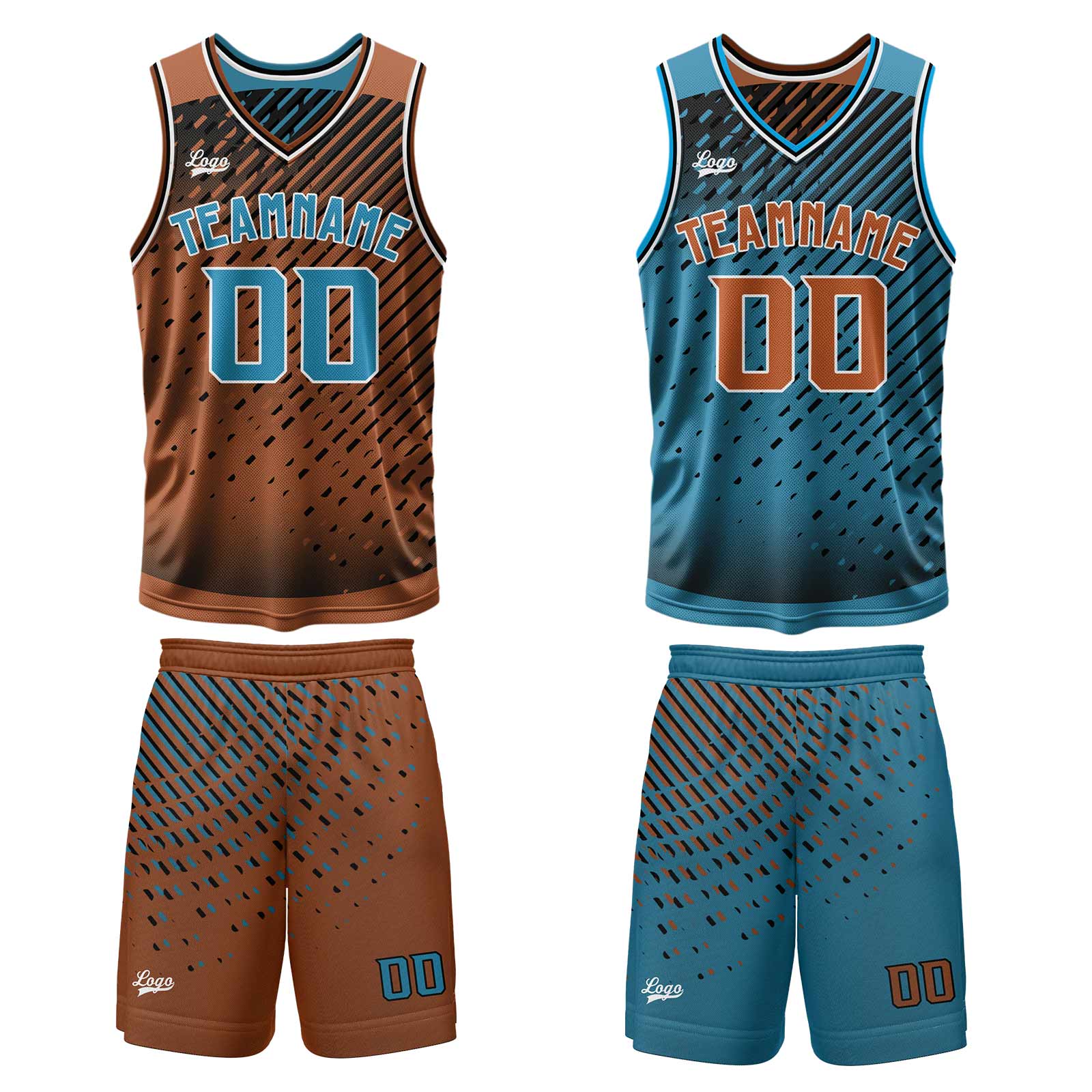 Benutzerdefinierte Braun Blau Reversible Basketball Jersey Personalisierte Print Name Nummer Logo
