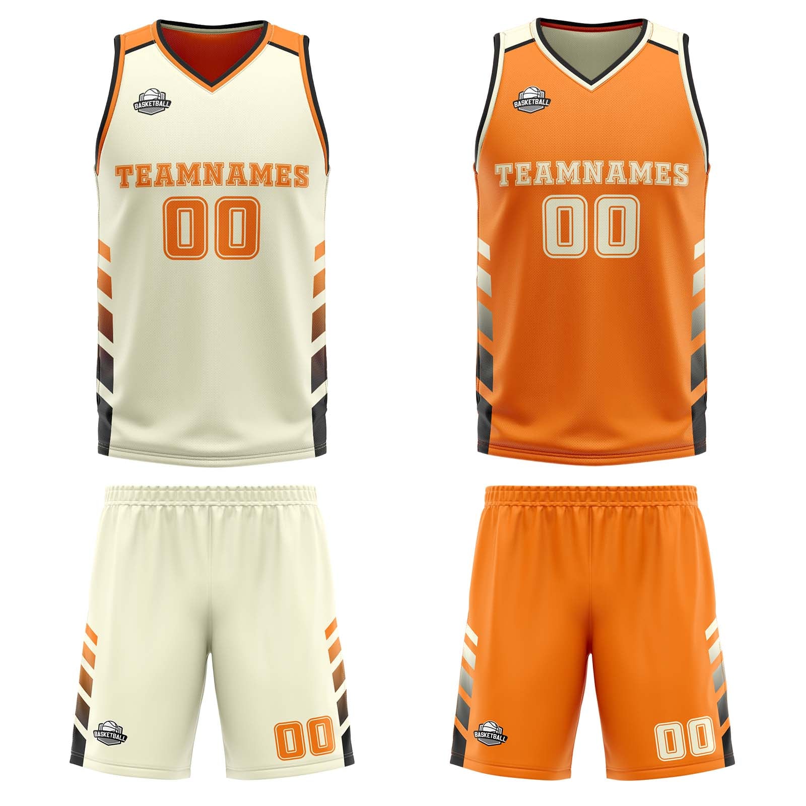 Benutzerdefinierte Creme Orange Schwarz Reversible Basketball Jersey Personalisierte Print Name Nummer Logo