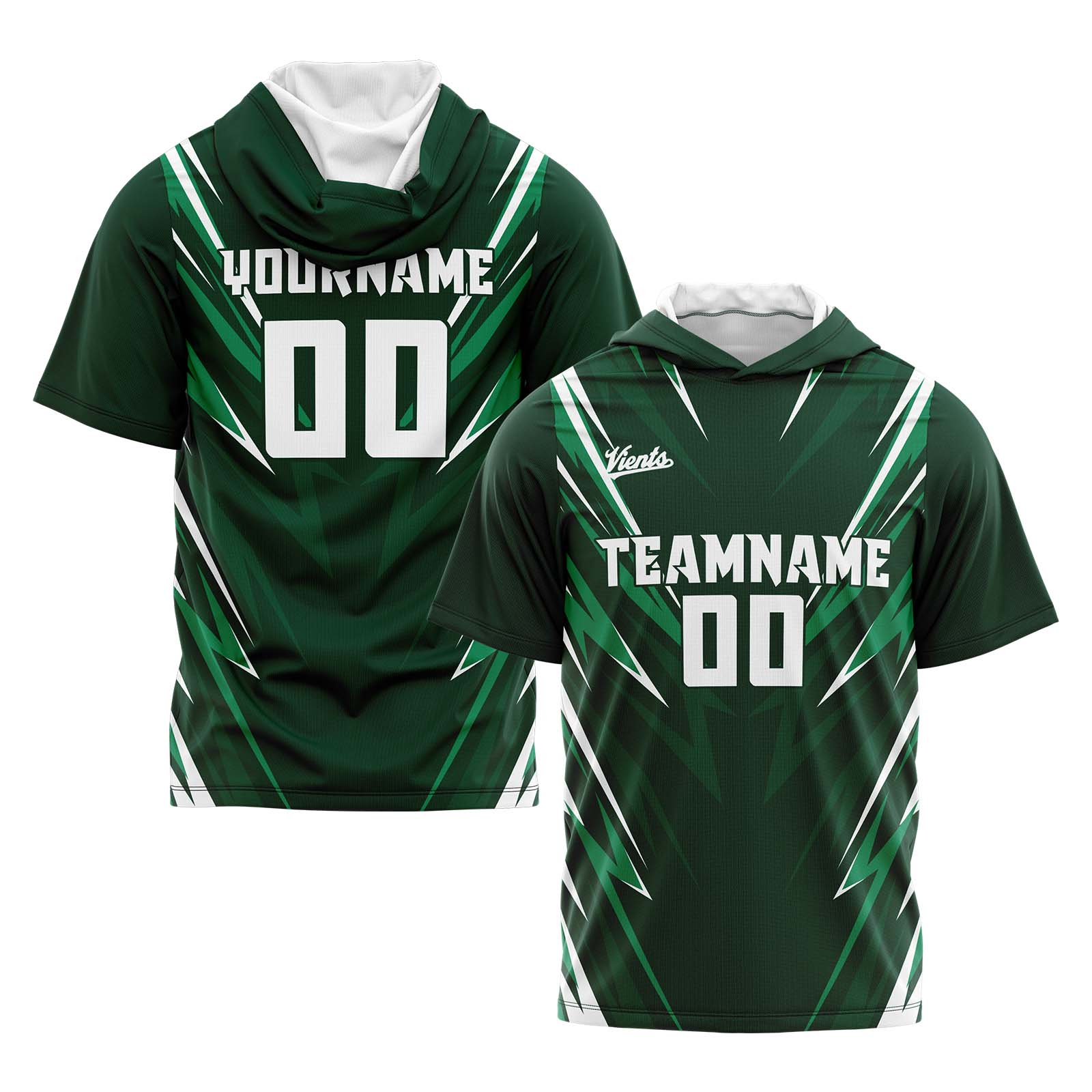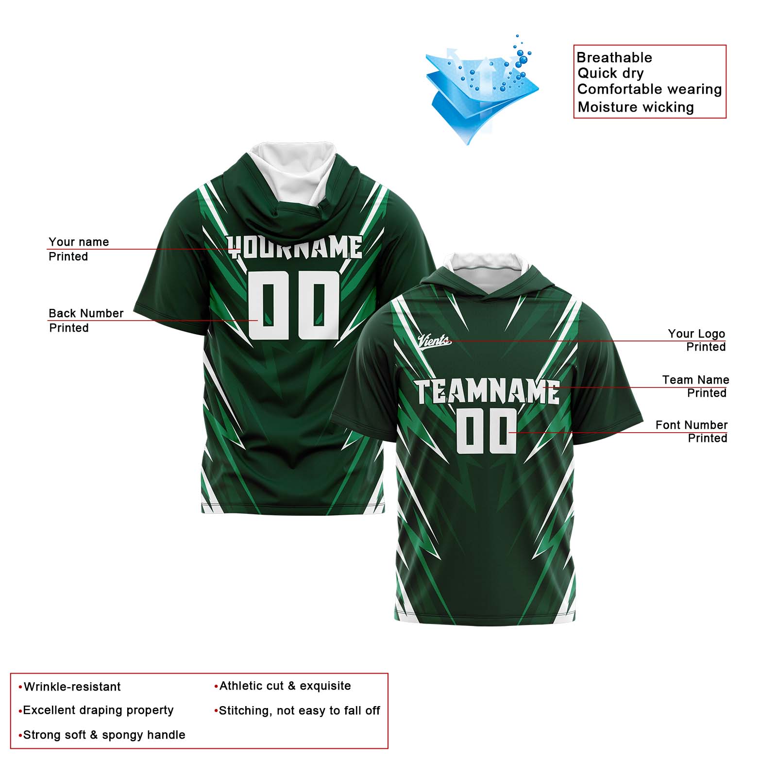 Benutzerdefinierte Dunkelgrün Kurzarm-Kapuzenpullover für Männer Frauen Hemden mit Kapuzen gedruckt Name Logo