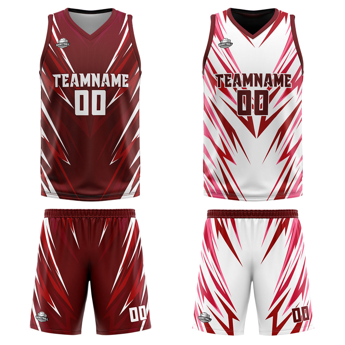 Benutzerdefinierte Dunkelrot Reversible Basketball Jersey Personalisierte Print Name Nummer Logo