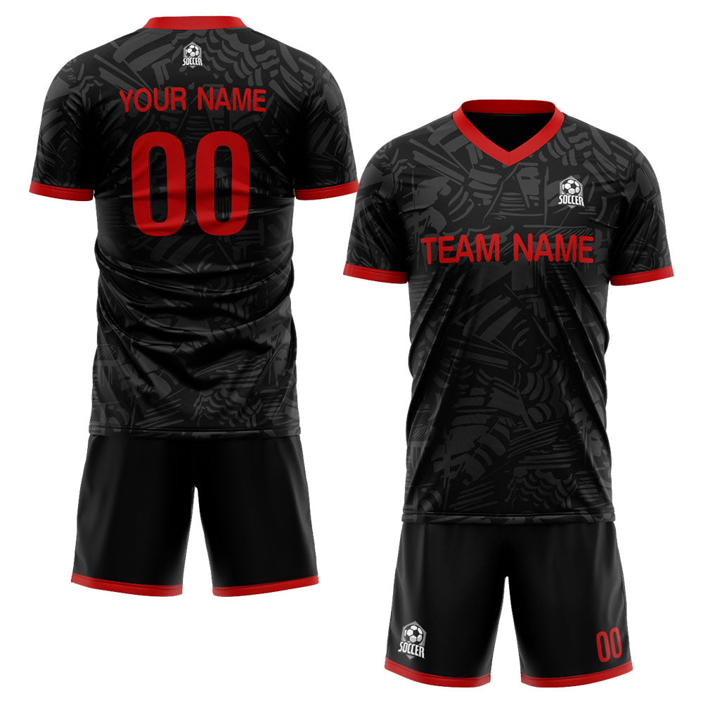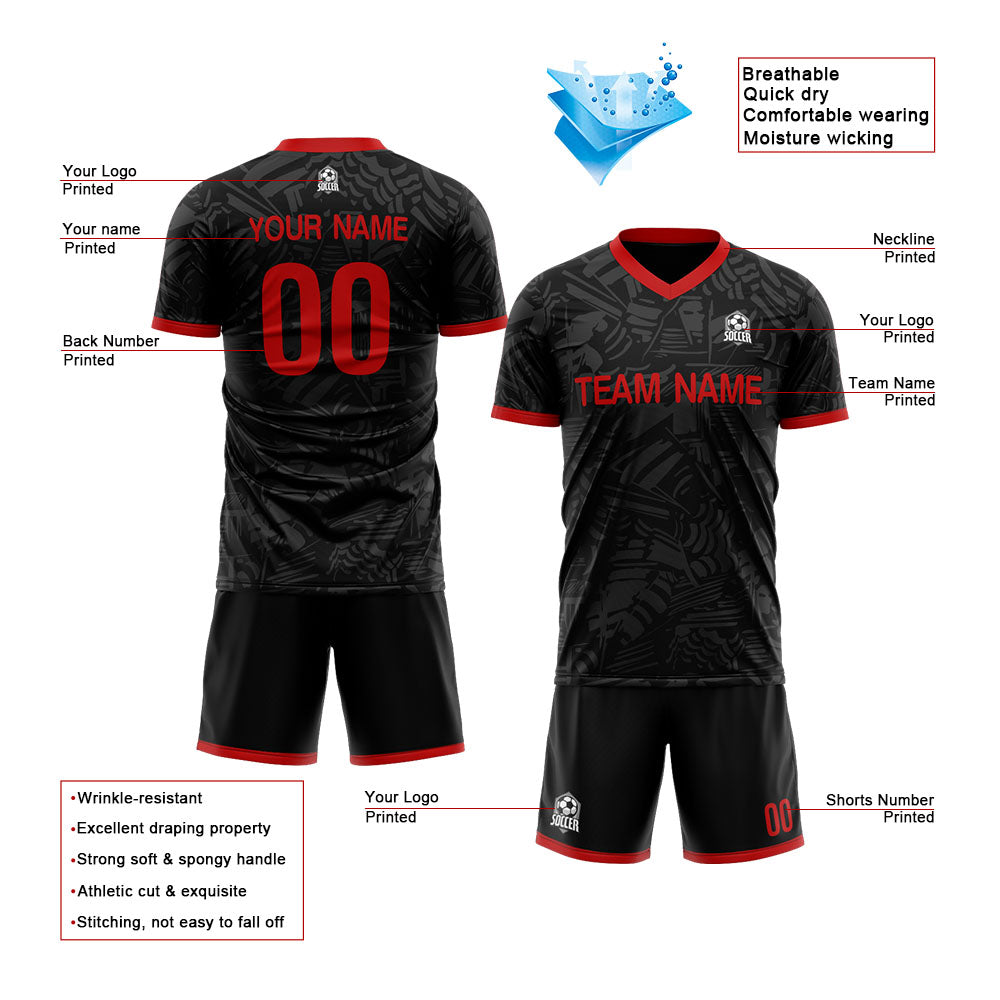 Benutzerdefinierte Schwarz Fußballuniform Jersey Kinder Erwachsene Personalisiertes Set Jersey Shirt