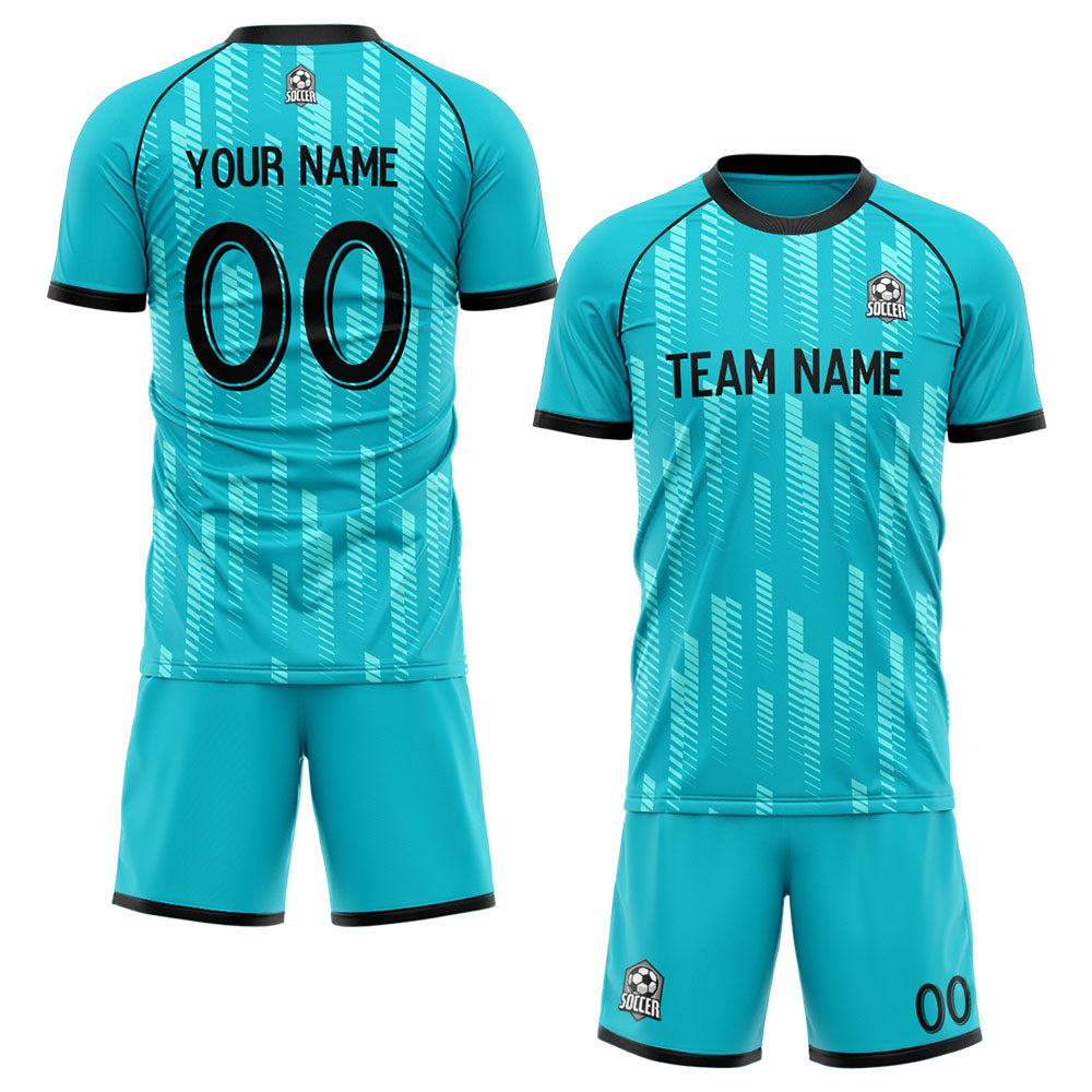 Benutzerdefinierte Fußballuniform Jersey Kinder Erwachsene Personalisiertes Set Jersey Shirt Blaugrün