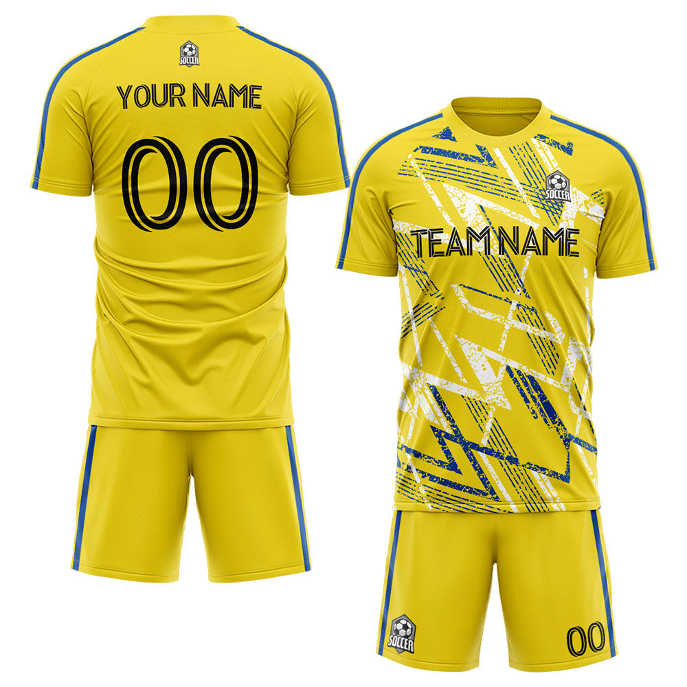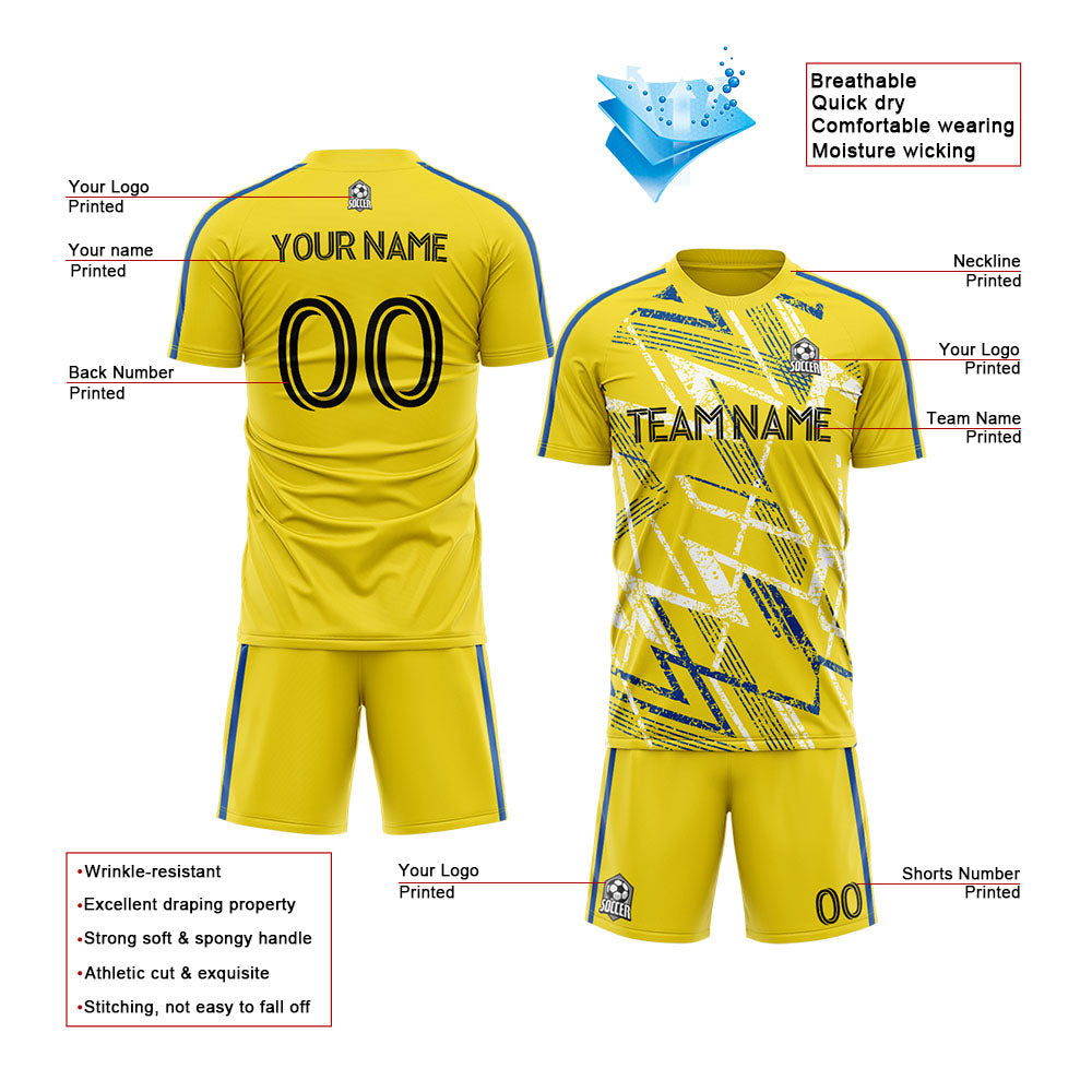 Benutzerdefinierte Fußballuniform Jersey Kinder Erwachsene Personalisiertes Set Jersey Shirt Gelb