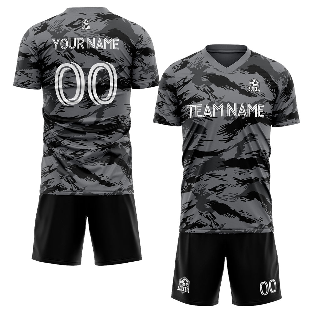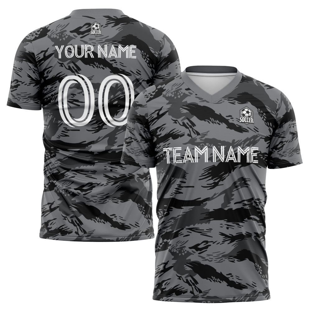 Angefertigte  Grau Fußball-Trikots für Kinder und Erwachsene, personalisierte Fußball-T-Shirts mit Teamname, Nummer und Logo