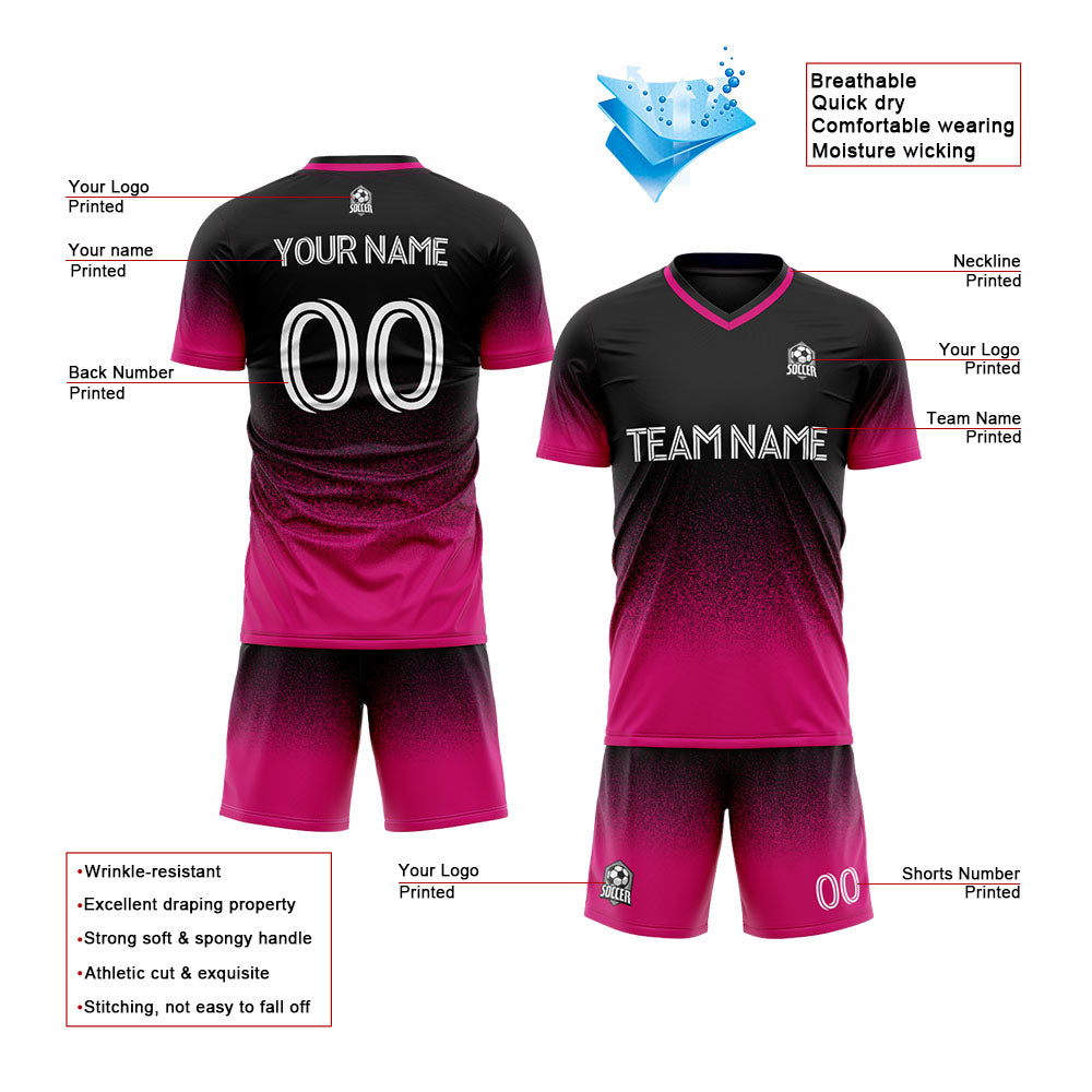 Benutzerdefinierte Fußballuniform Jersey Kinder Erwachsene Personalisiertes Set Jersey Shirt Rosa