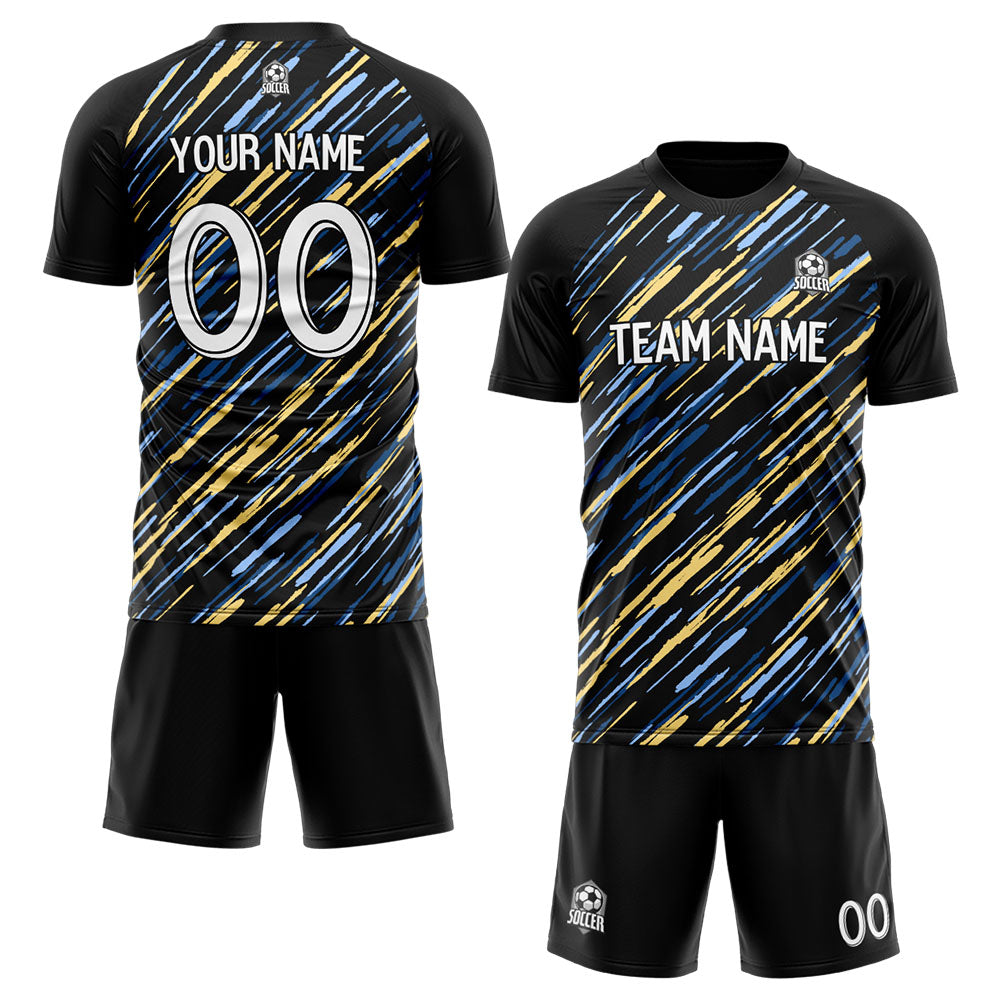 Benutzerdefinierte Fußballuniform Jersey Kinder Erwachsene Personalisiertes Set Jersey Shirt Schwarz