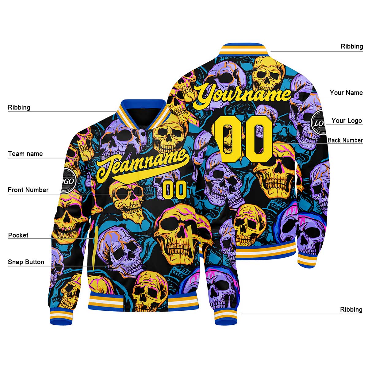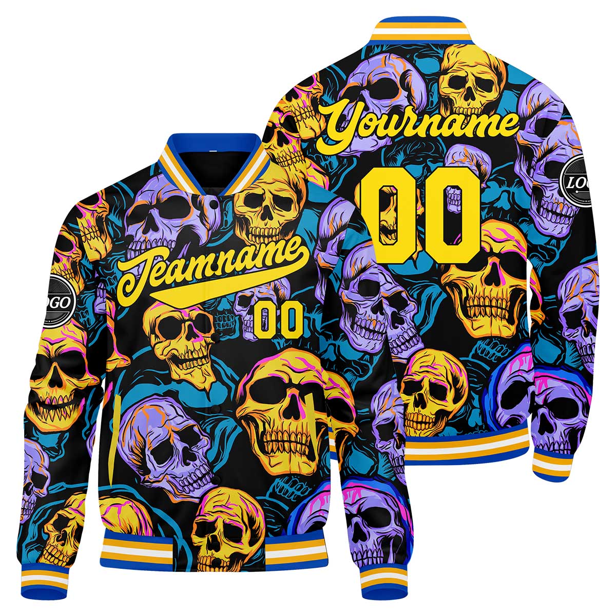 Benutzerdefinierte Gelb Blau Varsity-Jacke. Letterman-Jacke für Männer, Frauen und Jugendliche