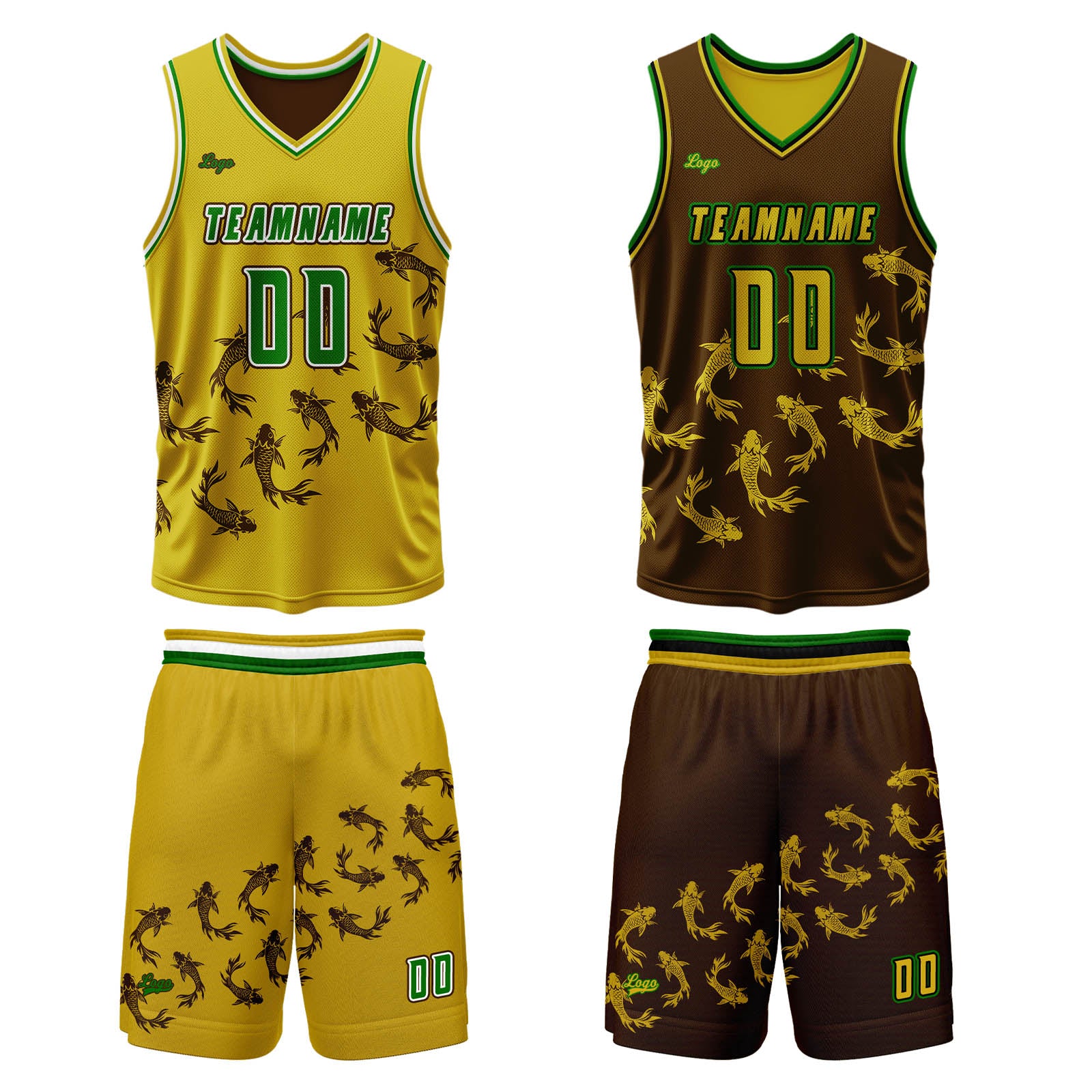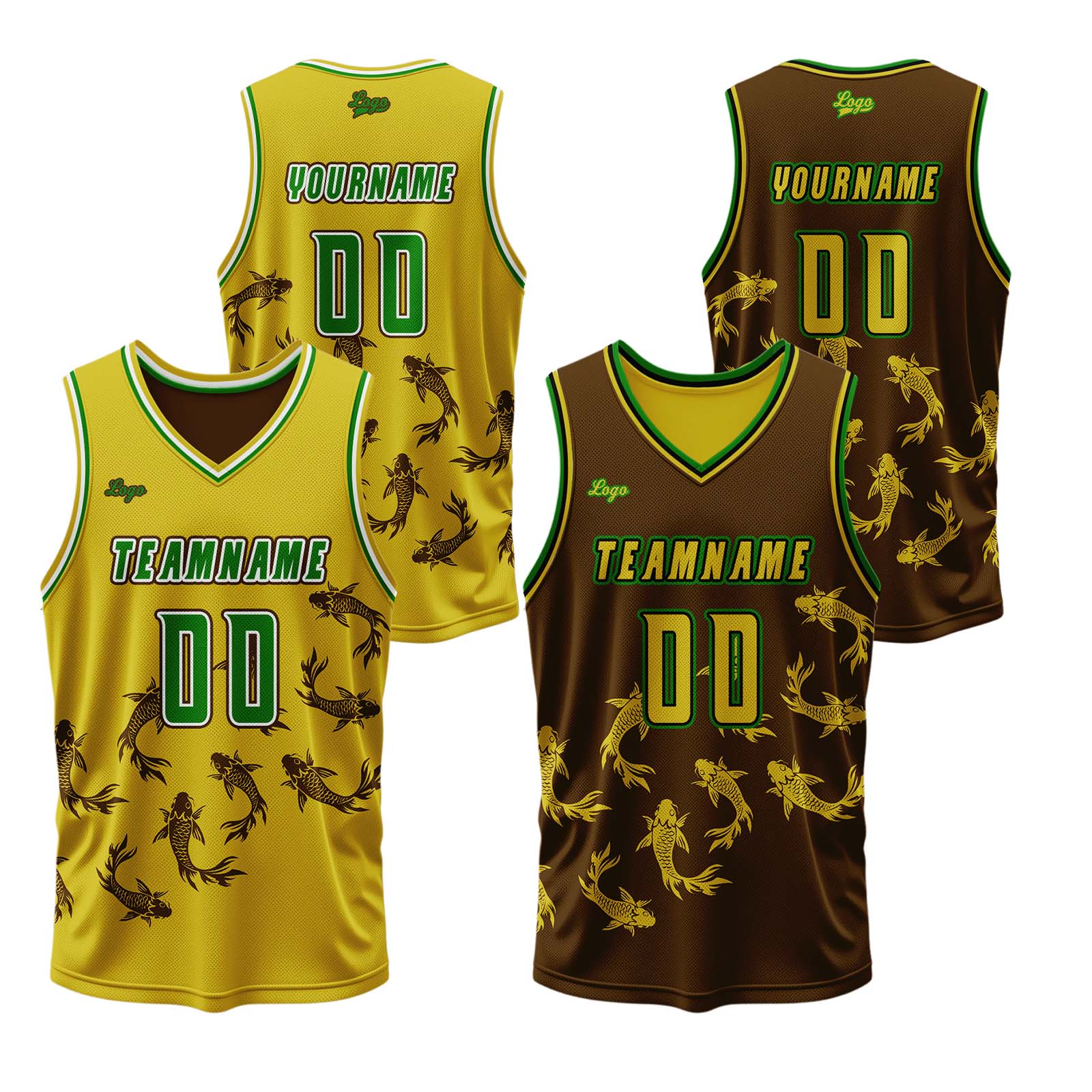 Benutzerdefinierte Gelb Braun Reversible Basketball Jersey Personalisierte Print Name Nummer Logo