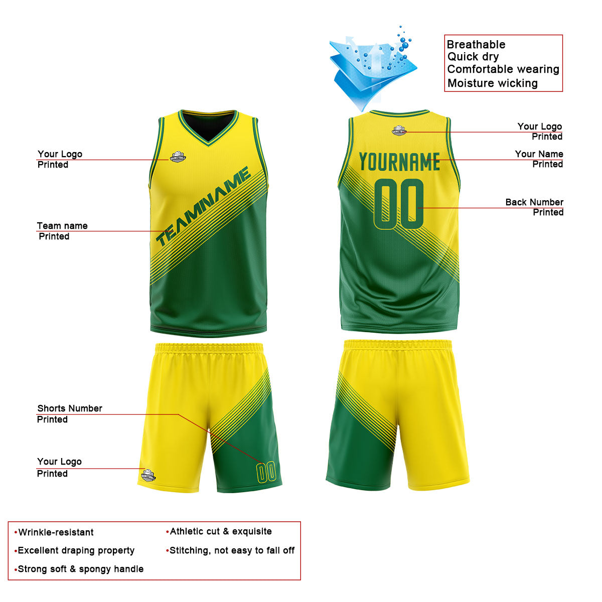 Benutzerdefinierte Gelb Grün Reversible Basketball Jersey Personalisierte Print Name Nummer Logo