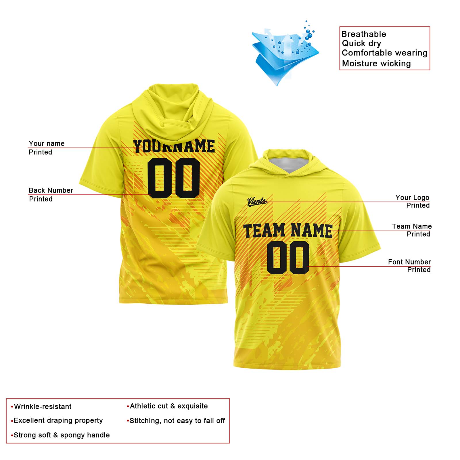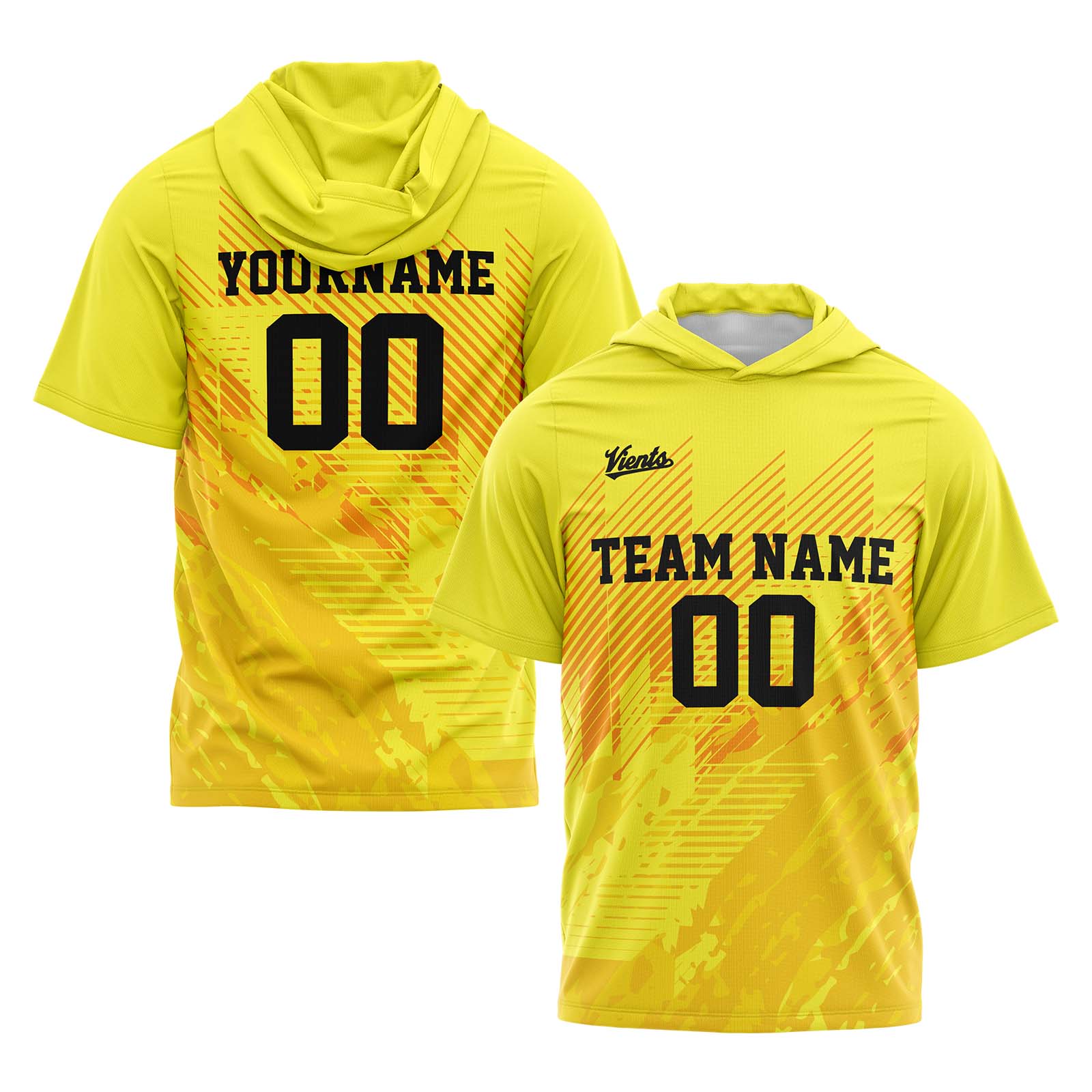 Benutzerdefinierte Gelb Kurzarm-Kapuzenpullover für Männer Frauen Hemden mit Kapuzen gedruckt Name Logo