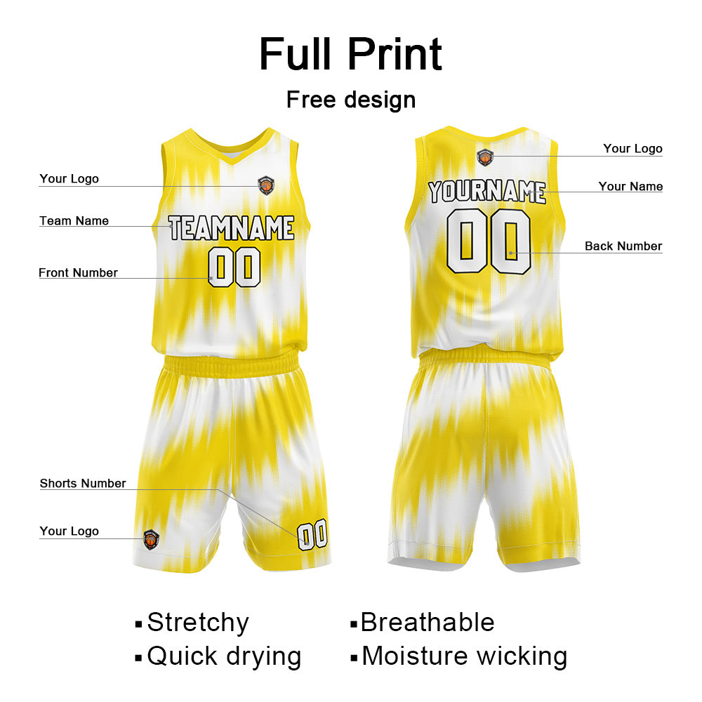 Benutzerdefinierte Gelb Reversible Basketball Jersey Personalisierte Name Nummernlogo drucken