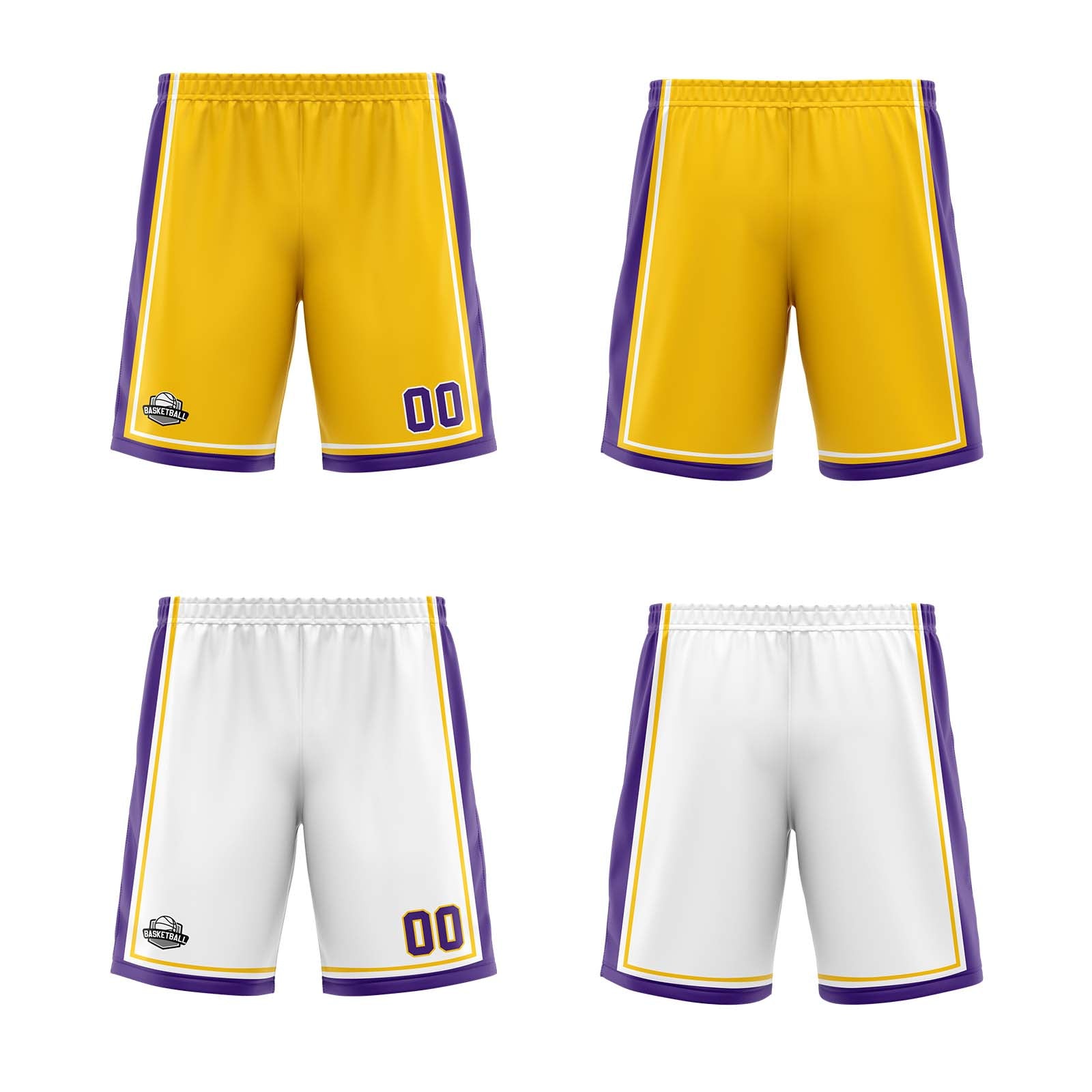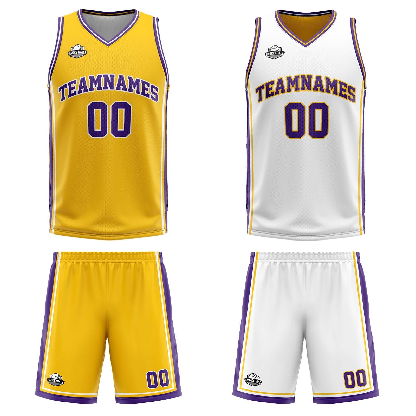 Benutzerdefinierte Gelb Weiß Lila Reversible Basketball Jersey Personalisierte Print Name Nummer Logo