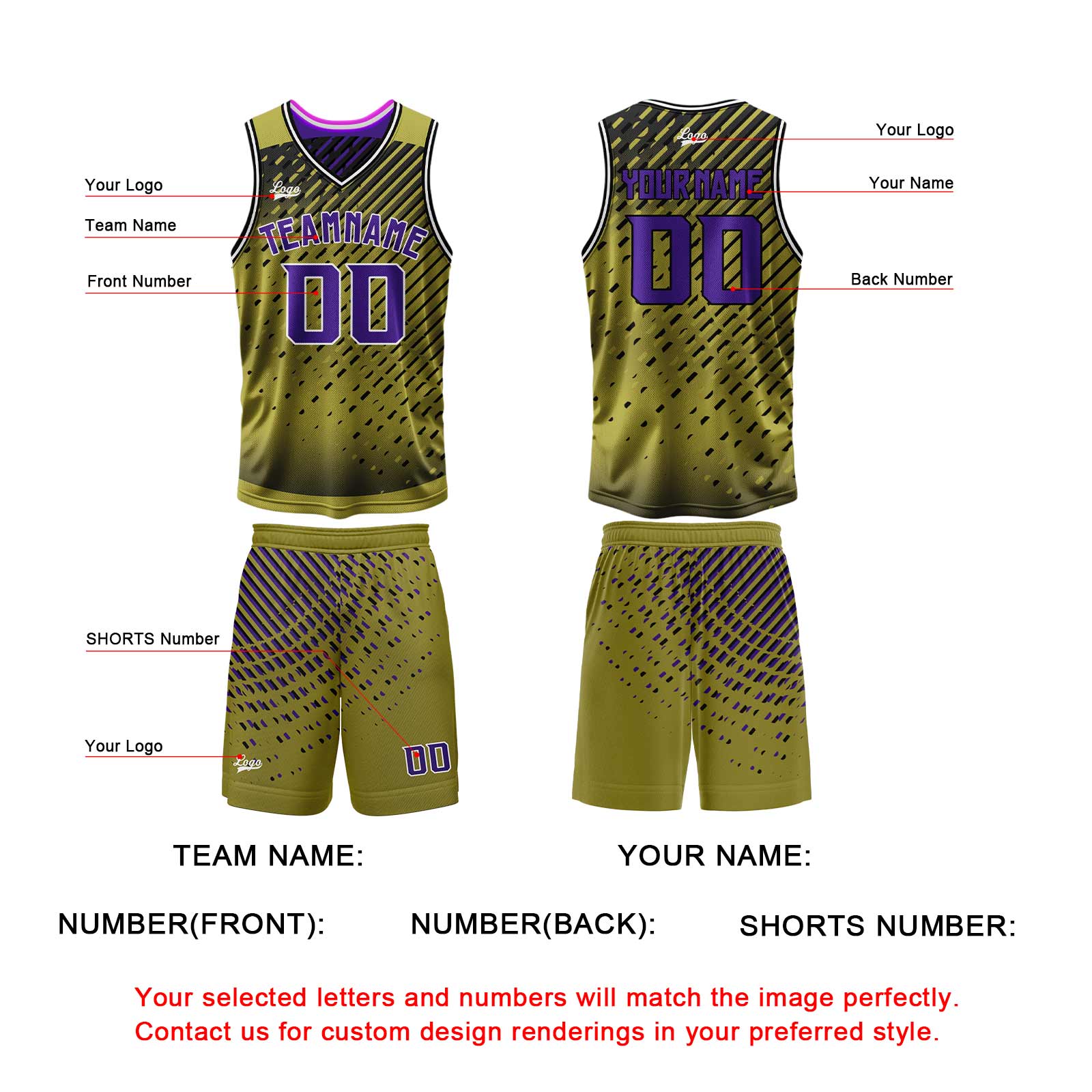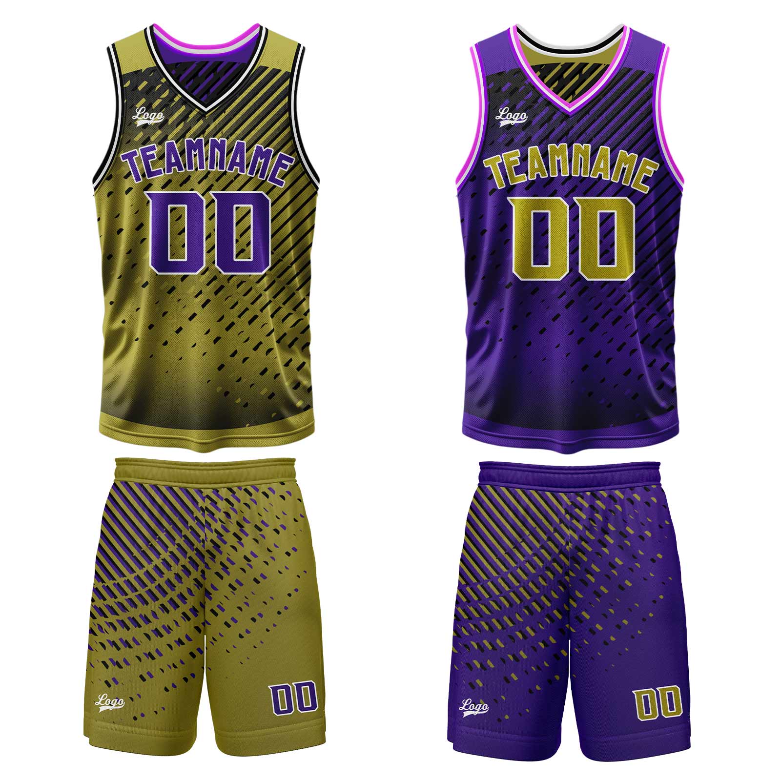 Benutzerdefinierte Gold Lila Reversible Basketball Jersey Personalisierte Print Name Nummer Logo