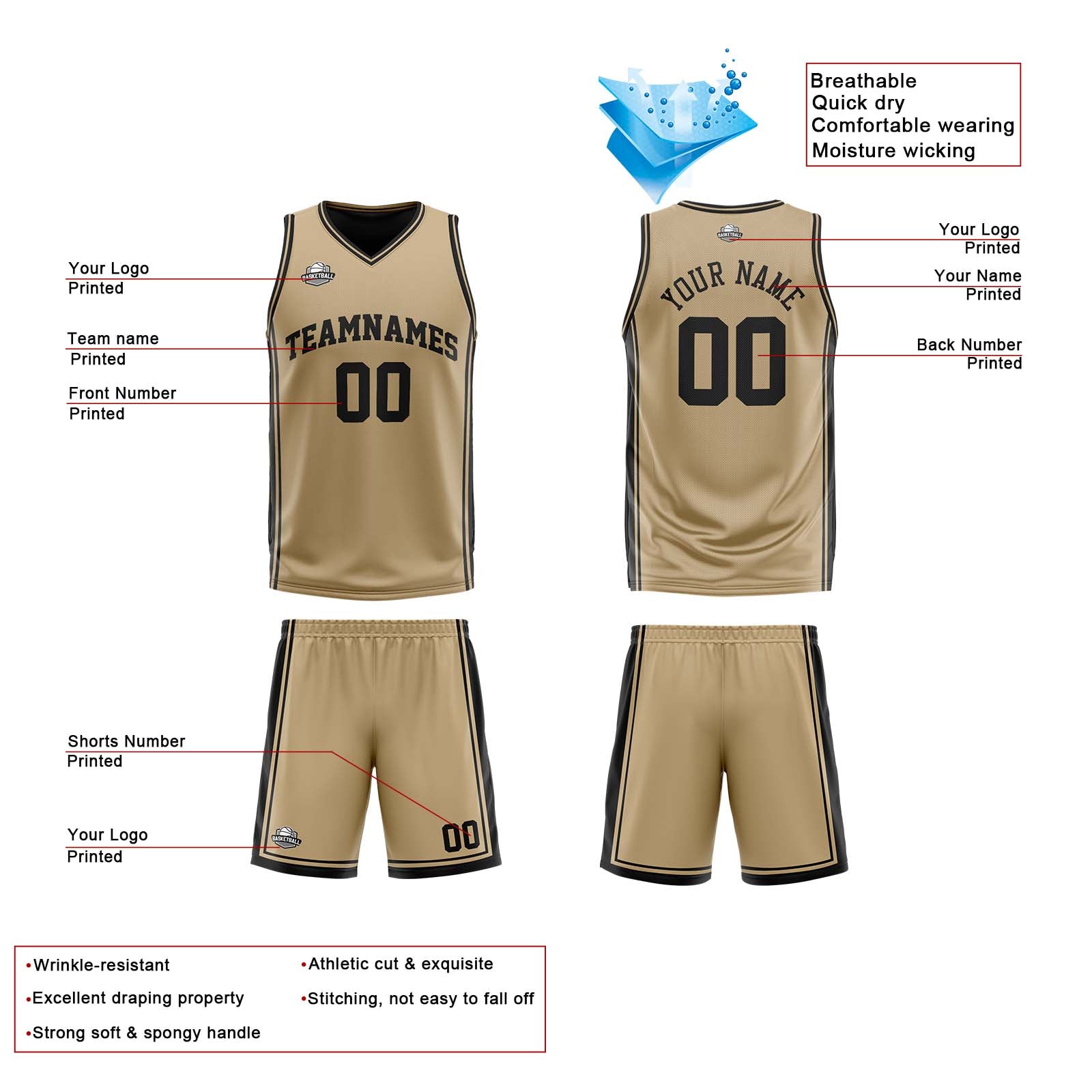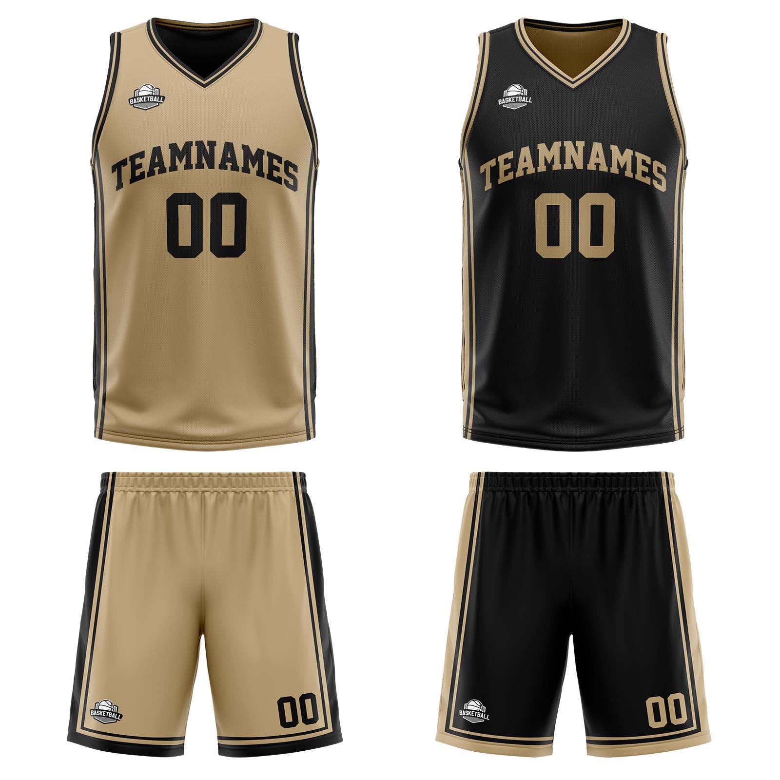 Benutzerdefinierte Gold Schwarz Reversible Basketball Jersey Personalisierte Print Name Nummer Logo