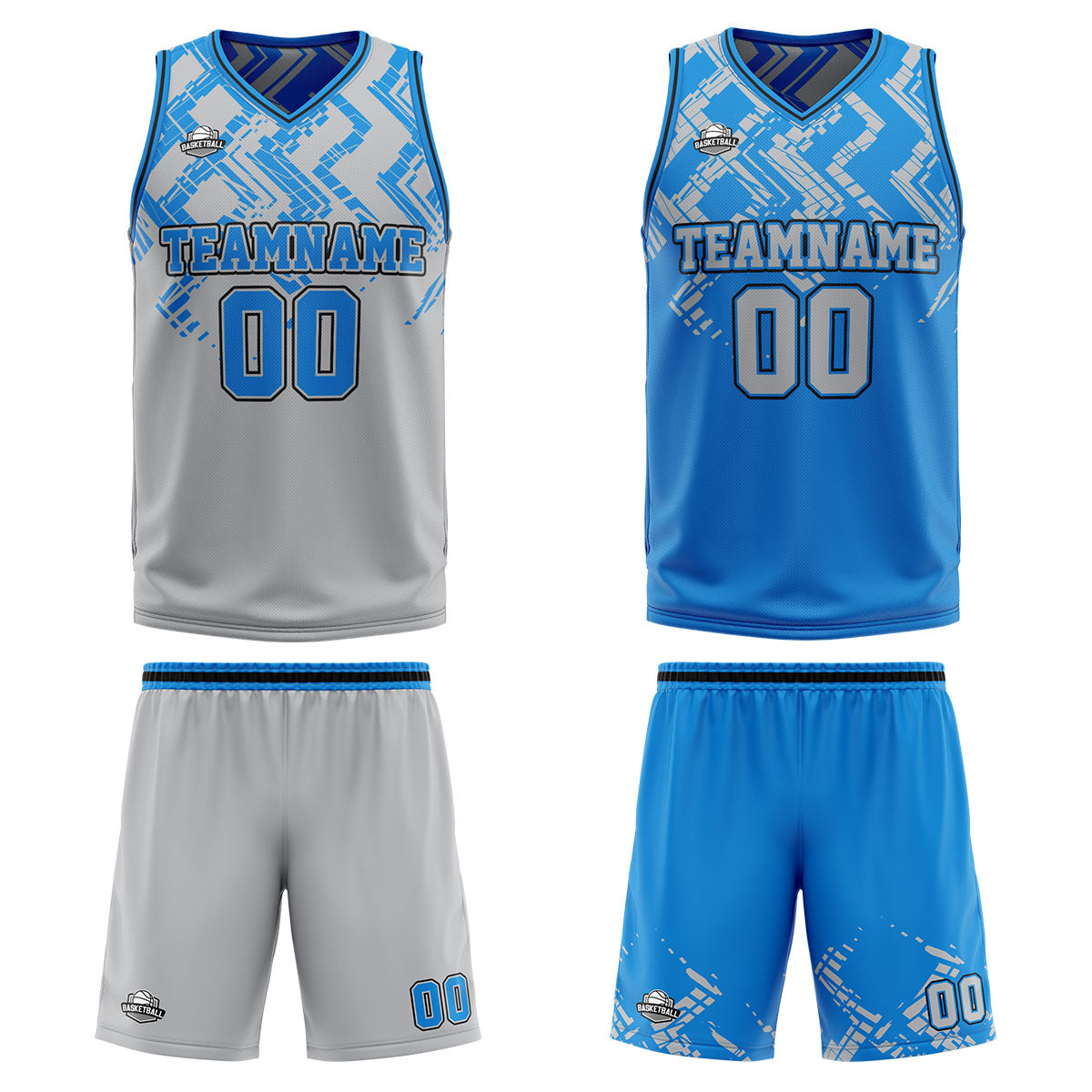 Benutzerdefinierte Grau Blau Reversible Basketball Jersey Personalisierte Print Name Nummer Logo