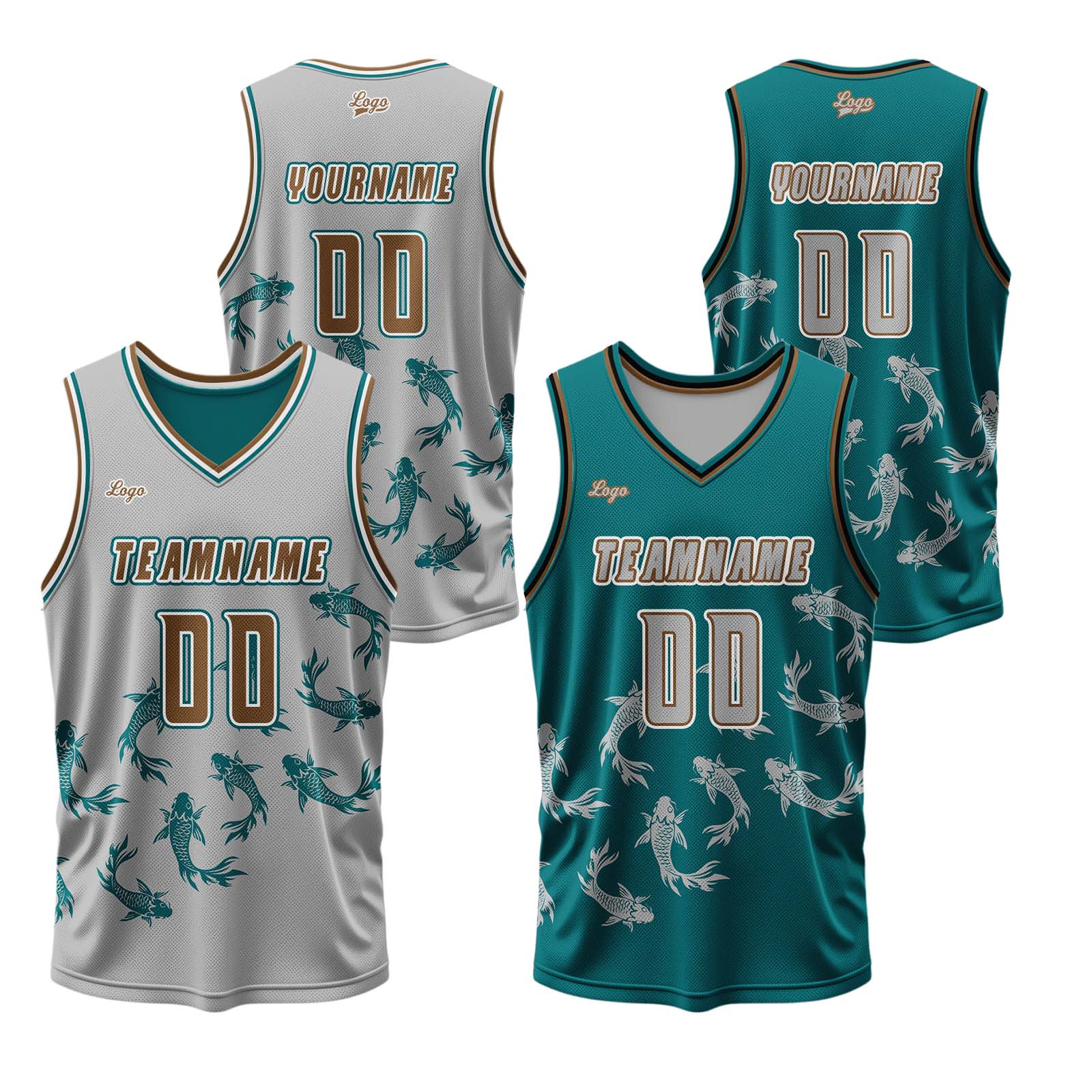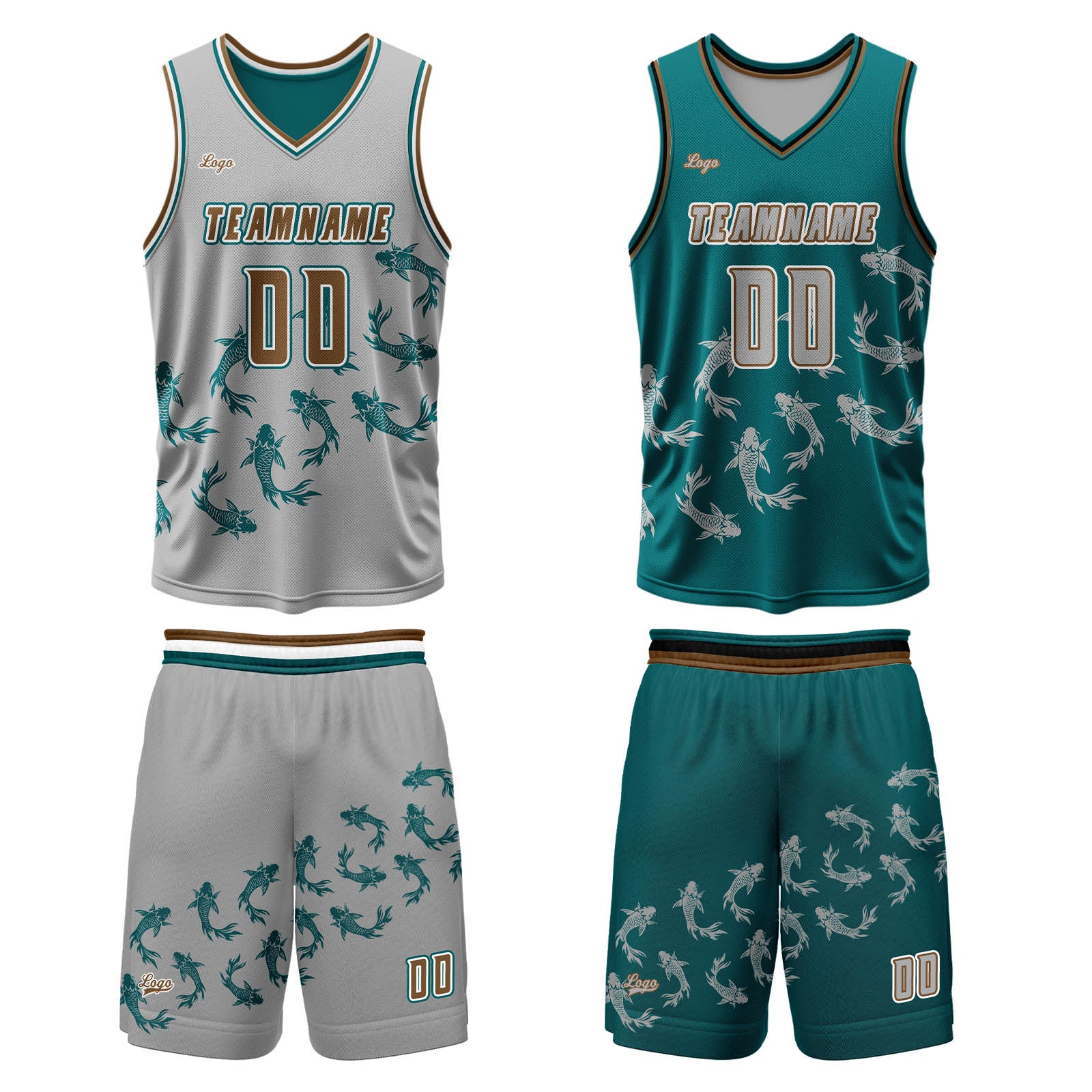 Benutzerdefinierte Grau Grün Reversible Basketball Jersey Personalisierte Print Name Nummer Logo
