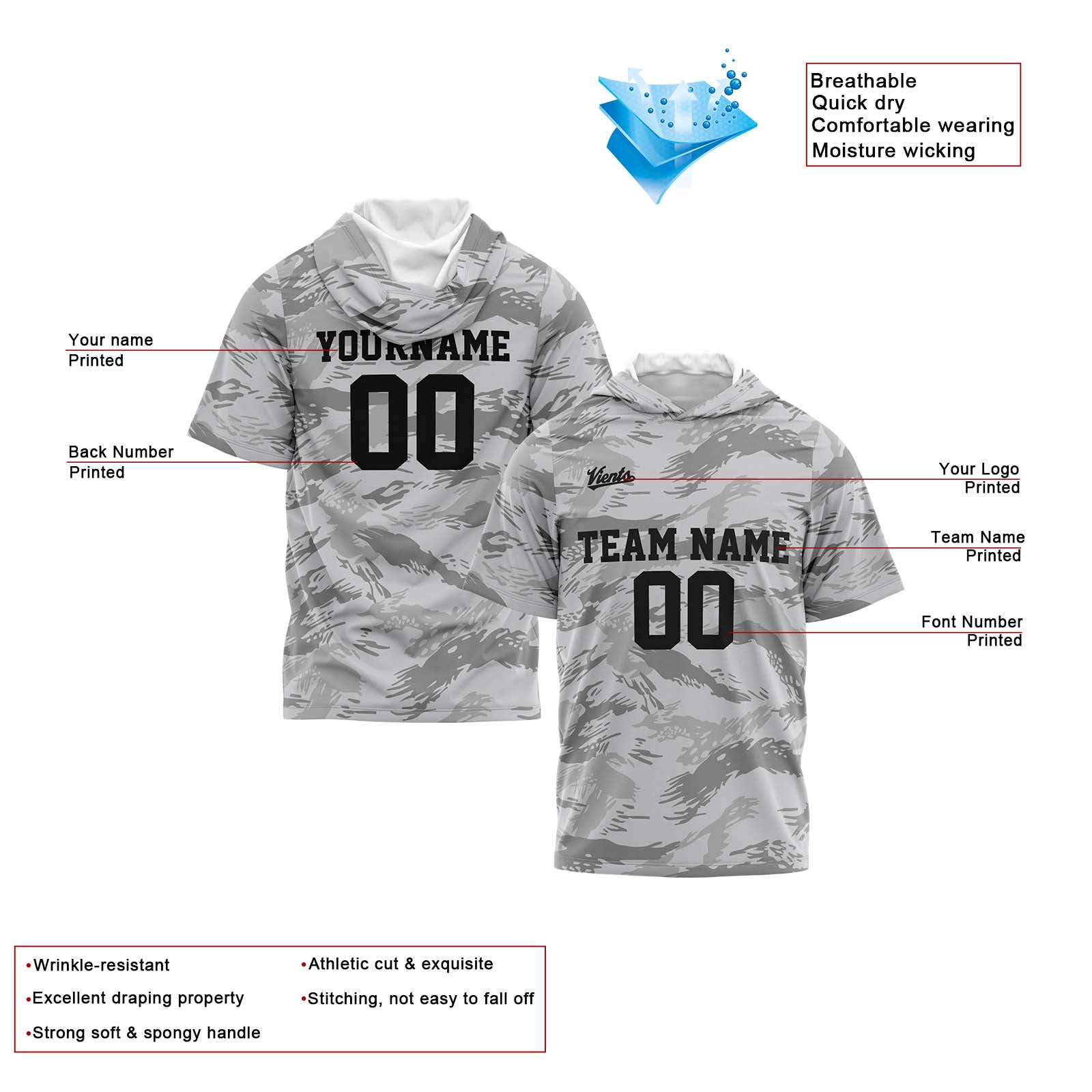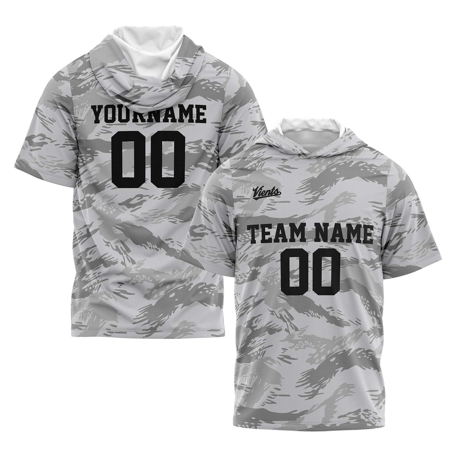 Benutzerdefinierte Grau Kurzarm-Kapuzenpullover für Männer Frauen Hemden mit Kapuzen gedruckt Name Logo