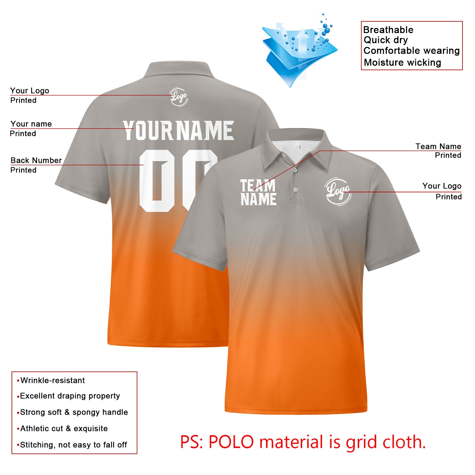 Benutzerdefinierte Grau Orange Fußball Gradient Polo-Shirts Fügen Sie Ihr Einzigartiges hinzu Logo/Name/Nummer