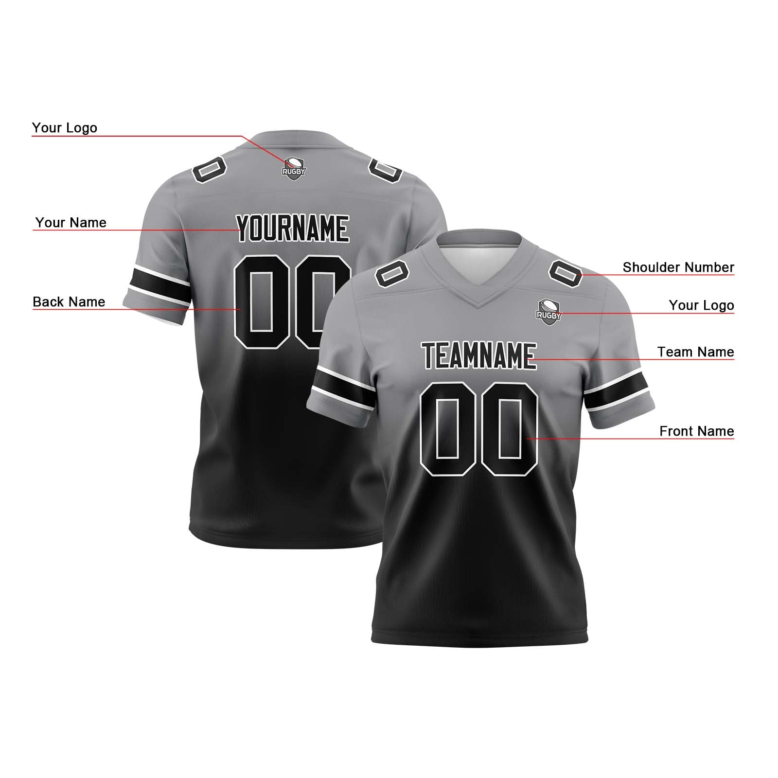Benutzerdefinierte Grau Schwarz Reversibel Genäht Fußball Trikot Personalisierte Gradient Fußball Shirts für Männer gedruckt Team Name Nummer Logo