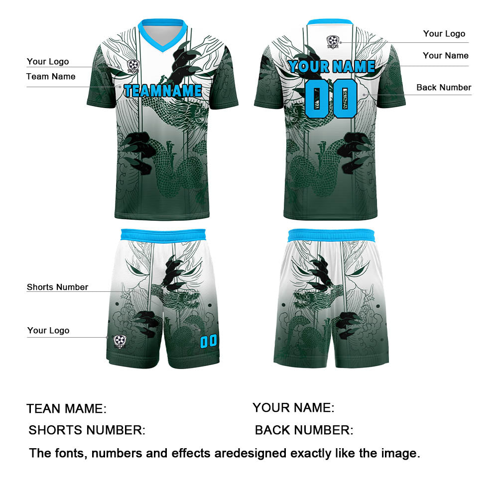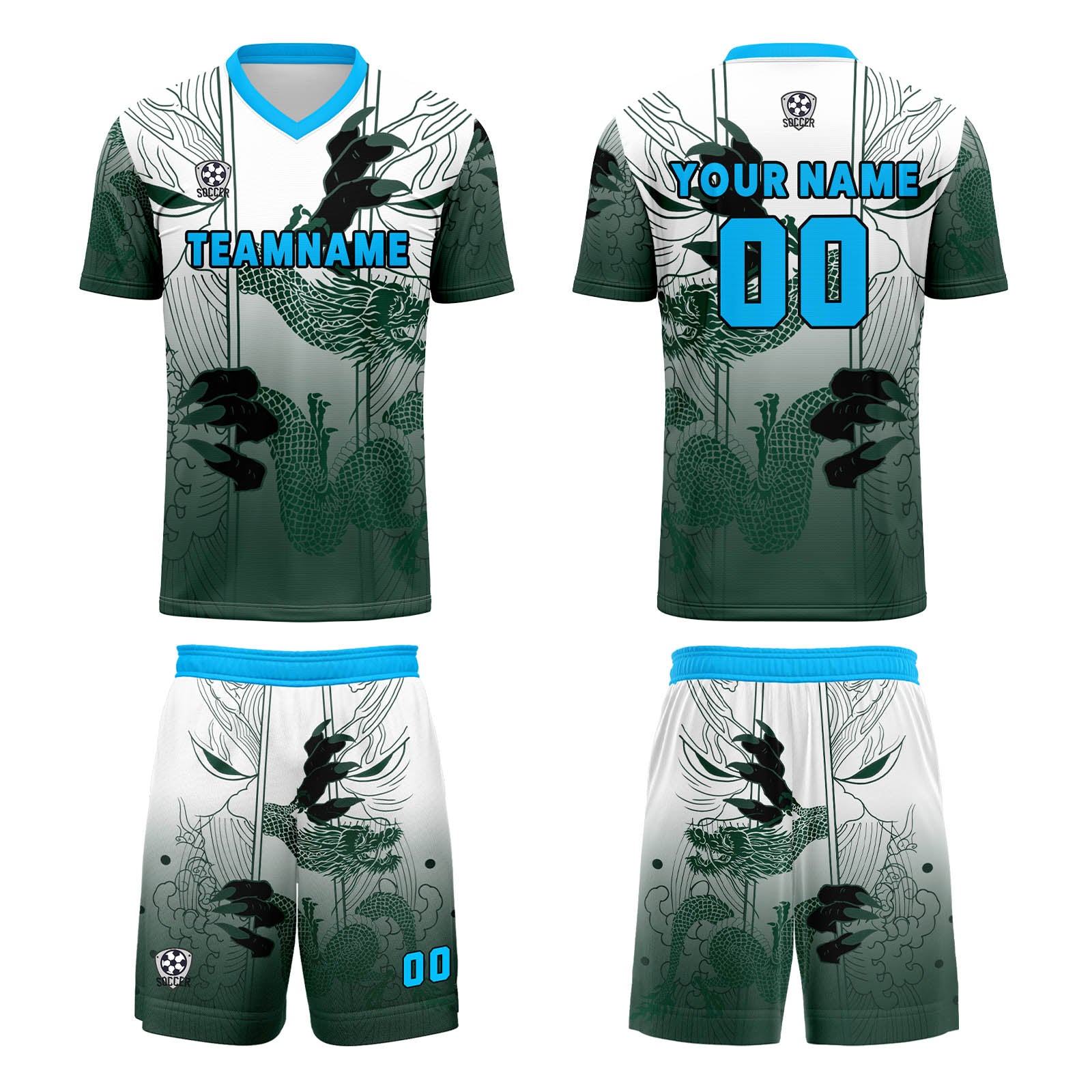 Benutzerdefinierte Grün Blau Trikots für Männer Frauen Personalisierte Fußball Uniformen für Erwachsene und Kind