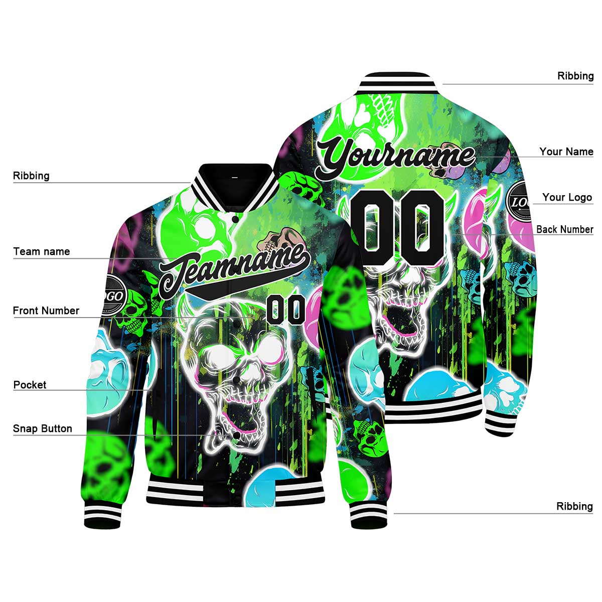 Benutzerdefinierte Grün Blau Varsity-Jacke. Letterman-Jacke für Männer, Frauen und Jugendliche