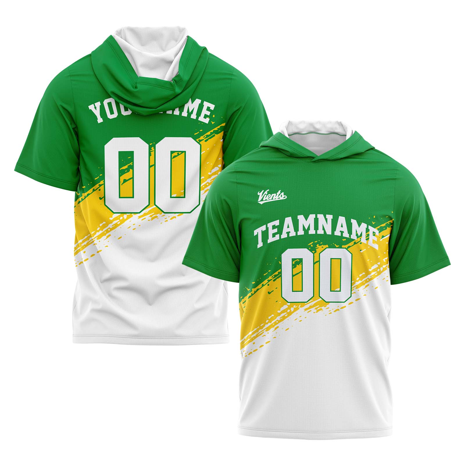 Benutzerdefinierte Grün Gelb Schwarz Kurzarm-Kapuzenpullover für Männer Frauen Hemden mit Kapuzen gedruckt Name Logo