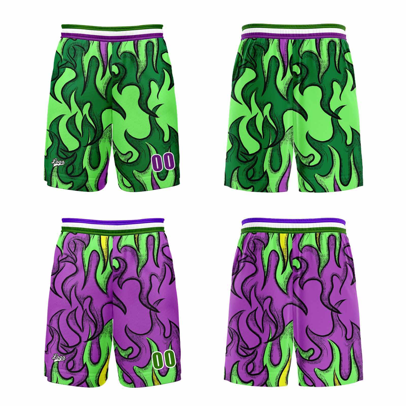 Benutzerdefinierte Grün Lila Reversible Basketball Jersey Personalisierte Print Name Nummer Logo