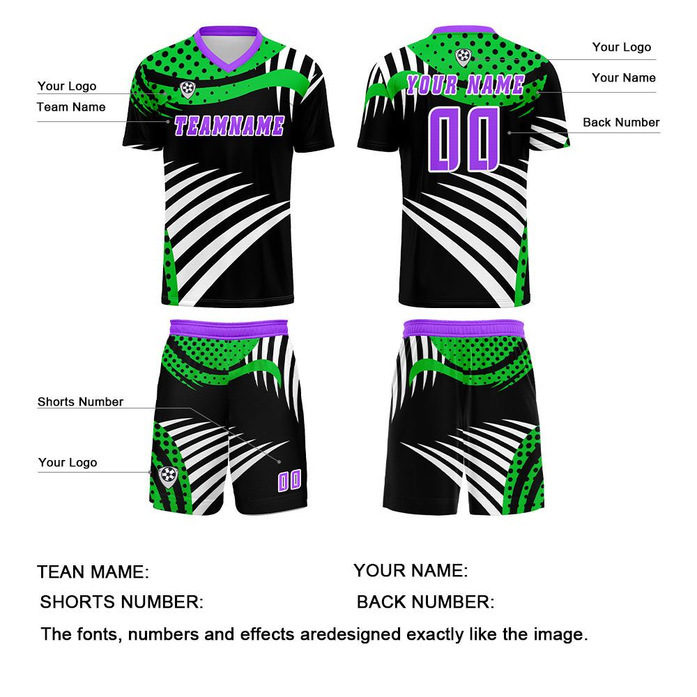 Benutzerdefinierte Grün Lila Trikots für Männer Frauen Personalisierte Fußball Uniformen für Erwachsene und Kind