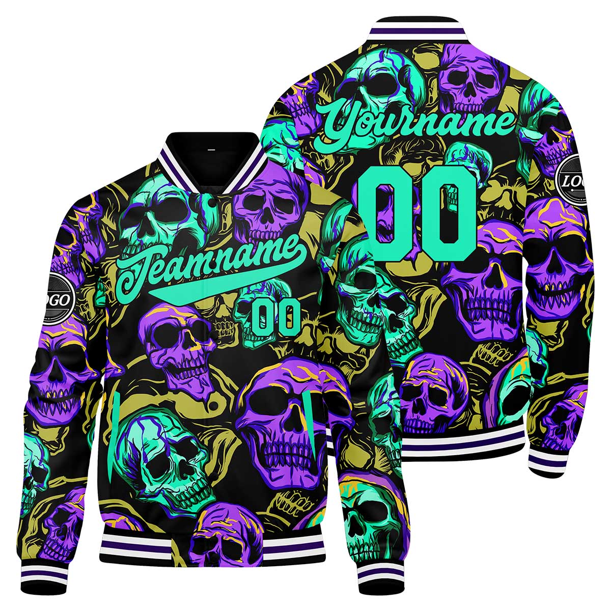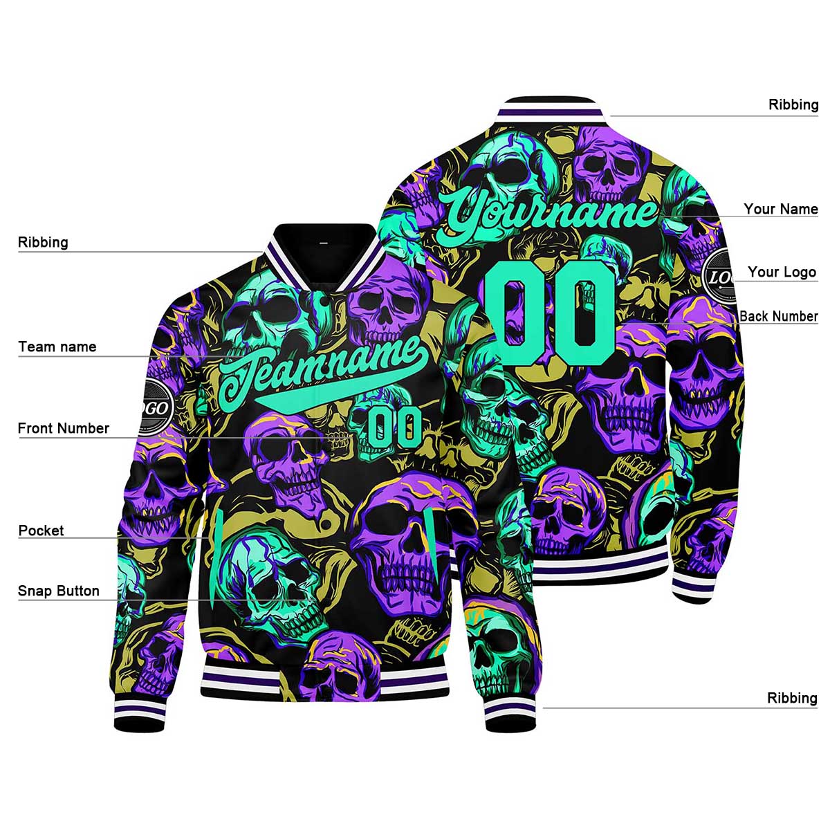 Benutzerdefinierte Grün Lila Varsity-Jacke. Letterman-Jacke für Männer, Frauen und Jugendliche