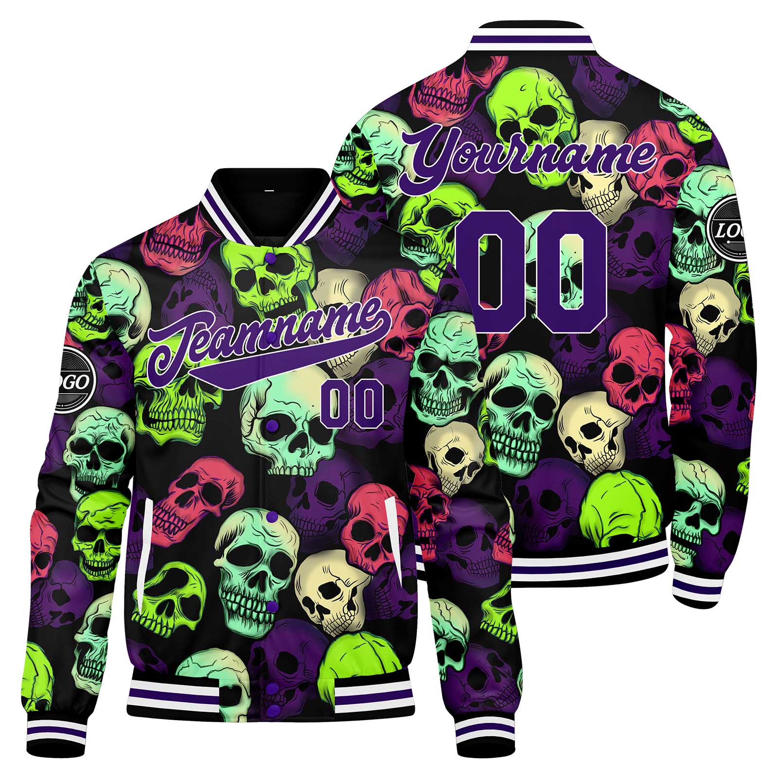 Benutzerdefinierte Grün Lila Varsity-Jacke. Letterman-Jacke für Männer, Frauen und Jugendliche