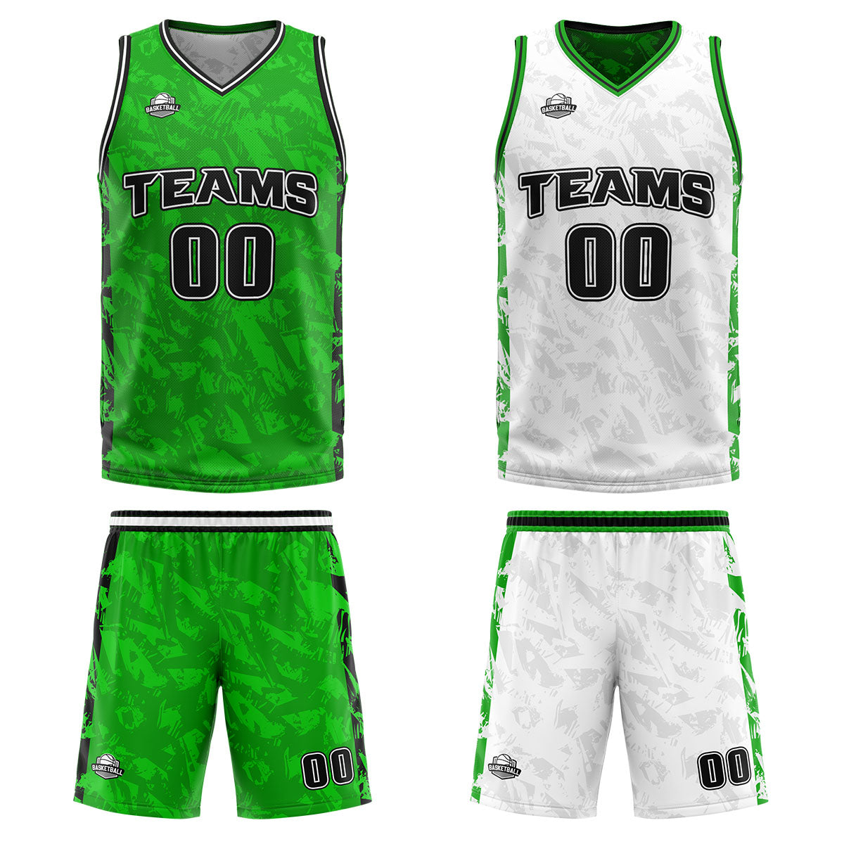 Benutzerdefinierte Grün Schwarz Reversible Basketball Jersey Personalisierte Print Name Nummer Logo