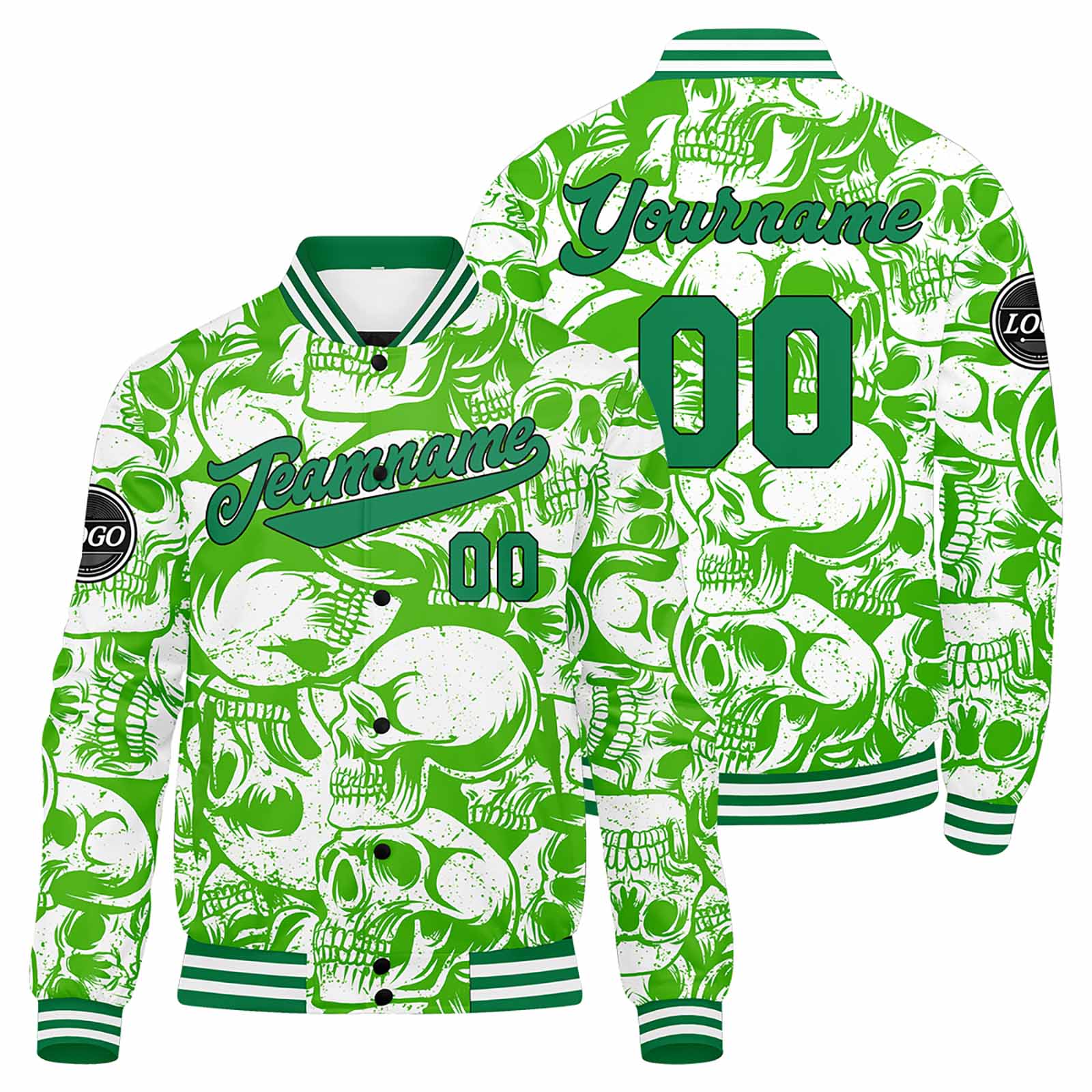 Benutzerdefinierte Grün Varsity-Jacke. Letterman-Jacke für Männer, Frauen und Jugendliche