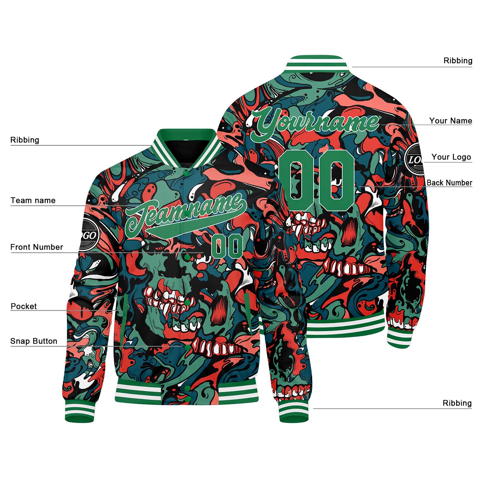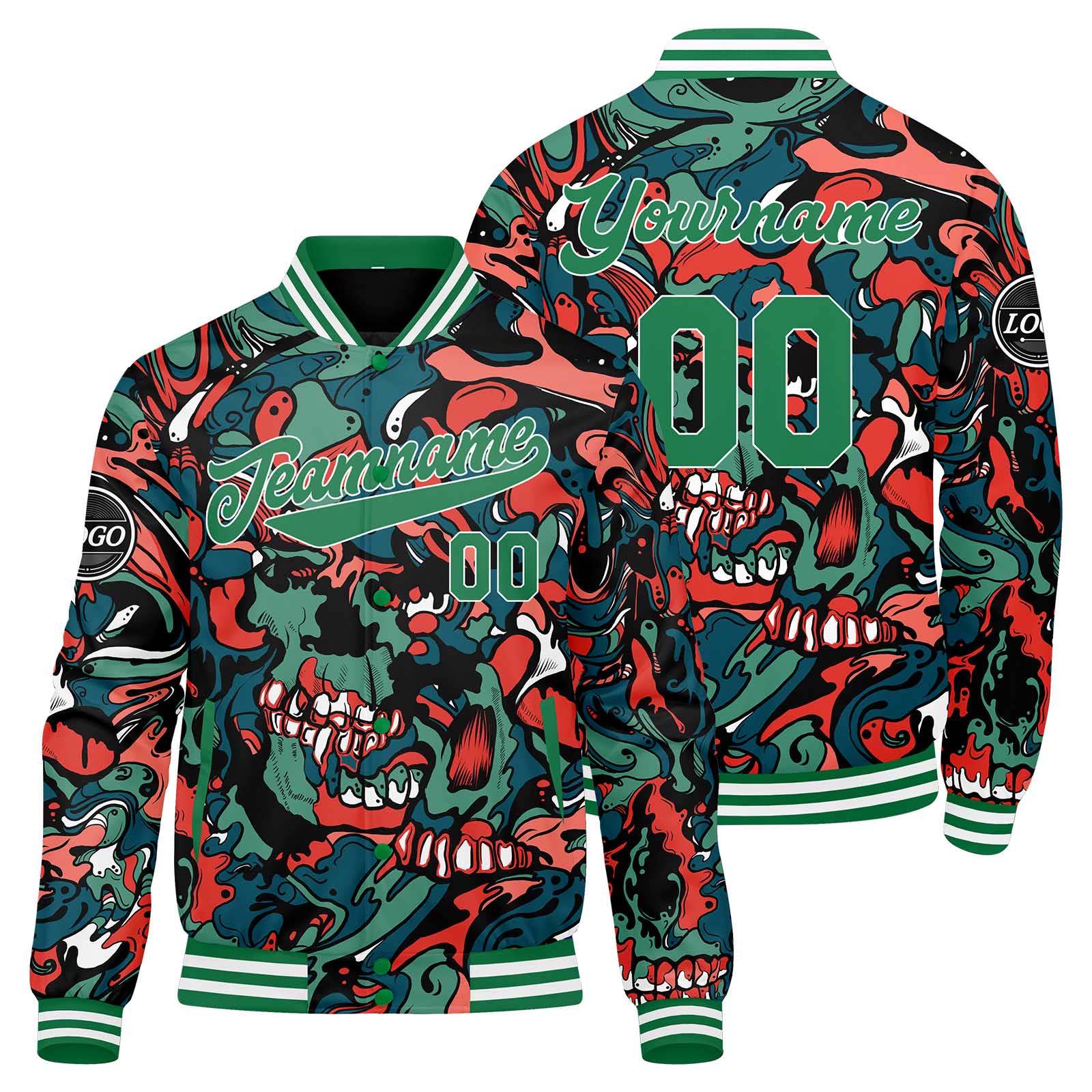 Benutzerdefinierte Grün Varsity-Jacke. Letterman-Jacke für Männer, Frauen und Jugendliche