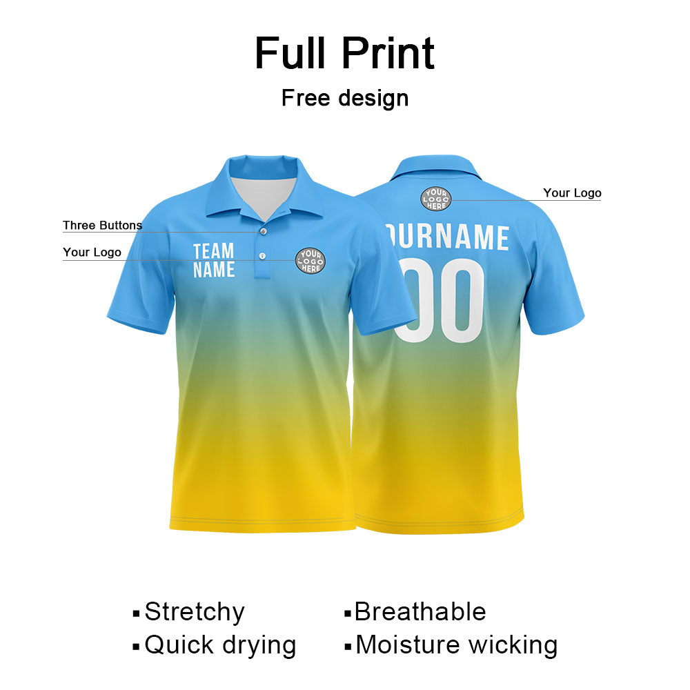 Benutzerdefinierte Hellblau Gelb Fußball Polo-Shirts Fügen Sie Ihr Einzigartiges hinzu Logo/Name/Nummer