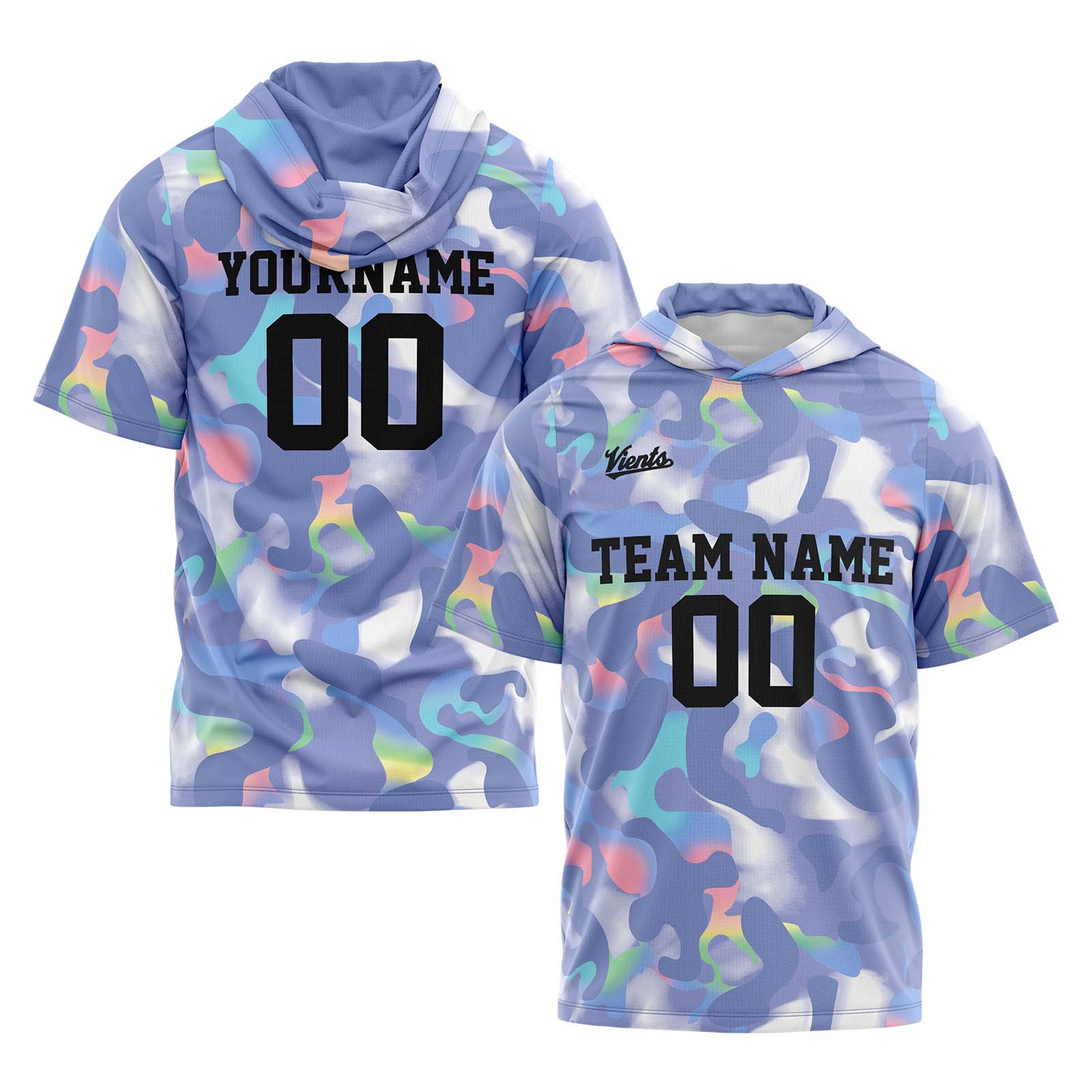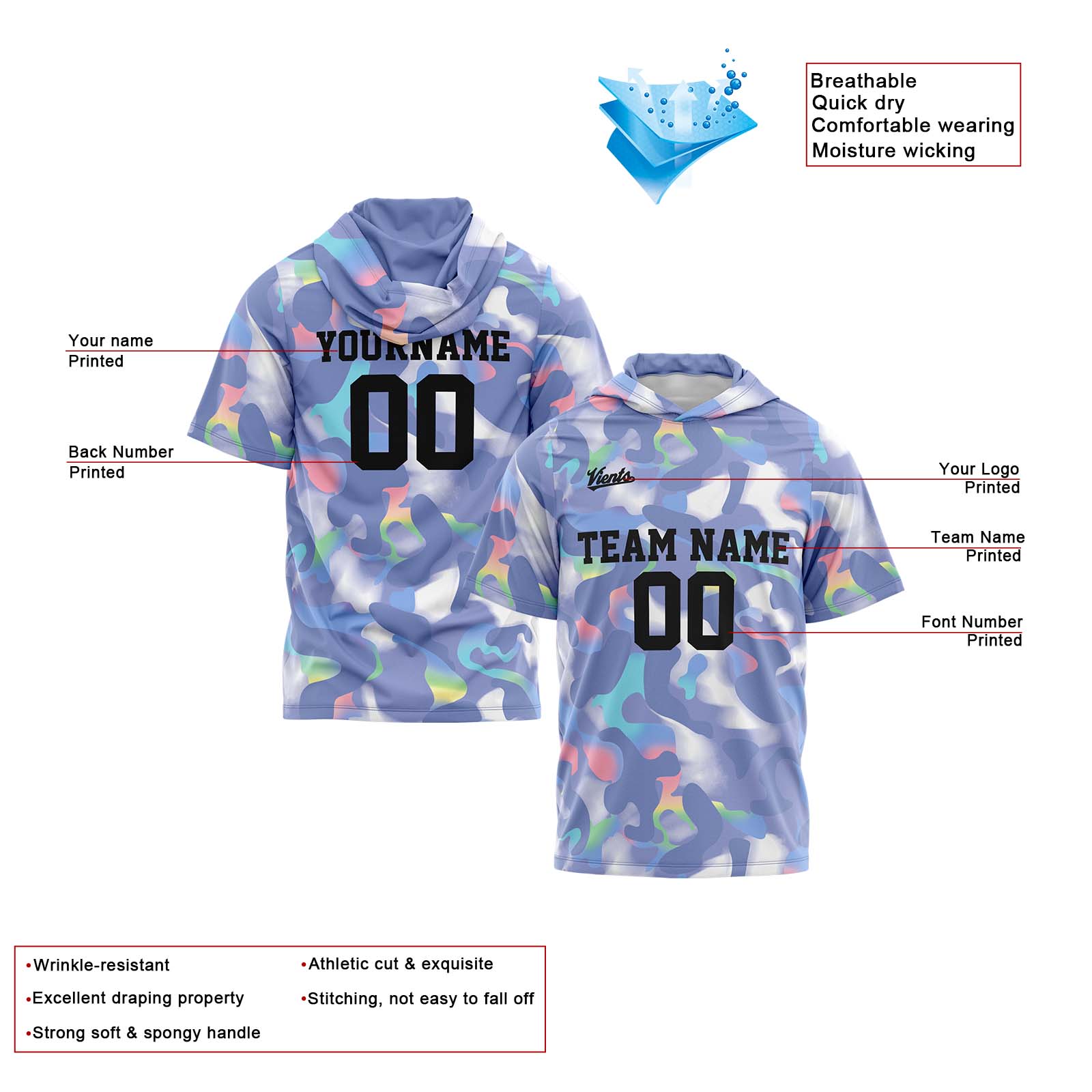 Benutzerdefinierte Hellviolett Kurzarm-Kapuzenpullover für Männer Frauen Hemden mit Kapuzen gedruckt Name Logo